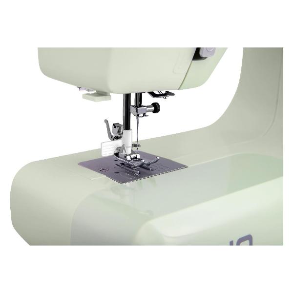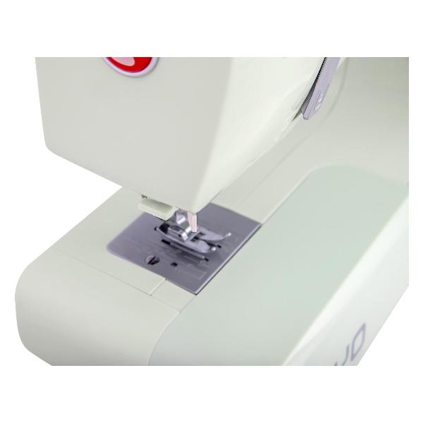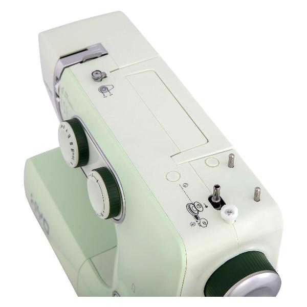 Модель действует с производительностью до 650 стеж/мин и может шить любые материалы без потери эксплуатационных свойств. Опция защиты пальцев при шитье и нитеобрезатель повышают удобство эксплуатации. Можно воспользоваться функцией реверса. Предусмотрена светодиодная подсветка.