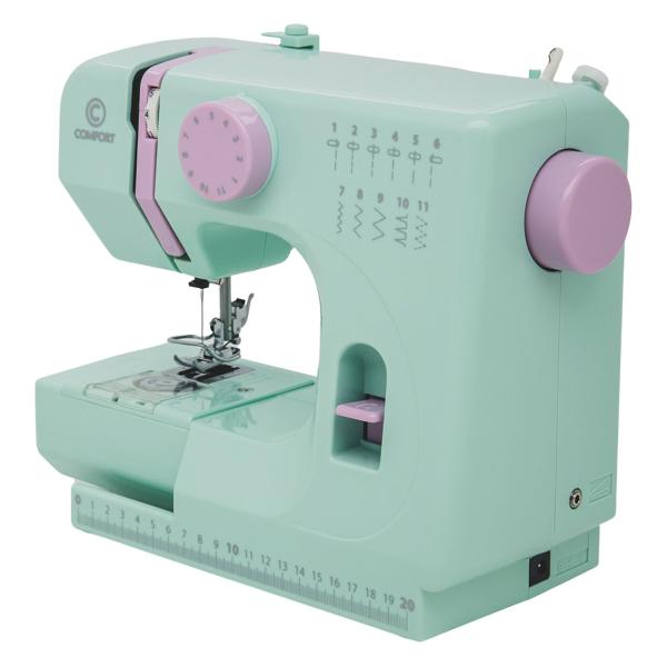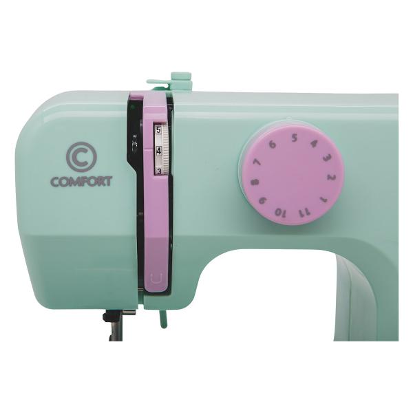 Швейная машина Comfort 2 — компактная модель, выполняющая 11 основных операций и три рабочие строчки. Размеры устройства — 26,5х22х12 см, вес — 2,2 кг. Шить можно даже на небольшом журнальном столике. Скорость житья достигает 500 стежков в минуту, максимальная ширина зигзага — 5 мм, длина стежка — 4 мм.