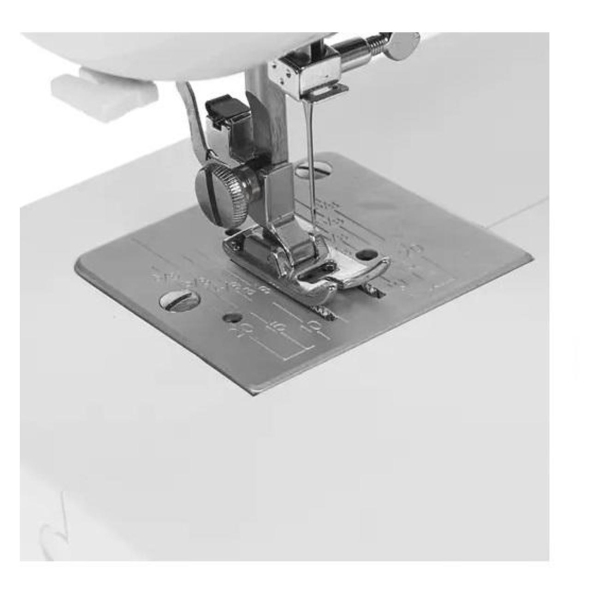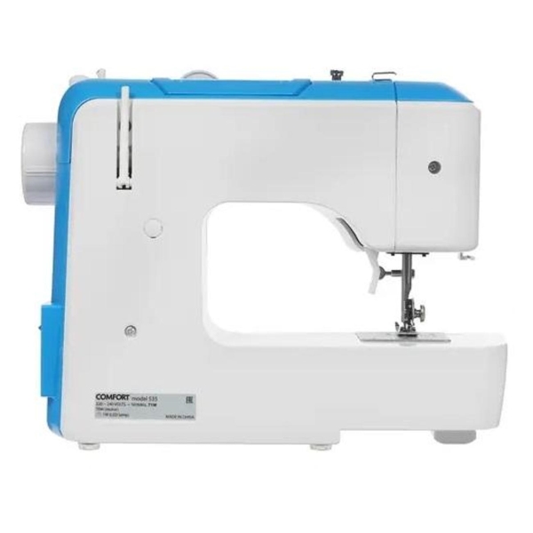 Швейная машина Comfort 535 совершает 12 швейных операций, среди которых трикотажные, оверлочные, декоративные и потайные строчки. Скорость шитья достигает 600 стеж./мин. Конфигурацией устройства предусмотрена возможность регулировки давления лапки, скорости шитья, ширины зигзагового шва, длины стежка и натяжения нити. Две штатные лапки позволяют с легкостью выполнять стандартные швы и выметывать петли. Комплект включает в себя три пластиковые шпульки, намотка нити происходит автоматически.