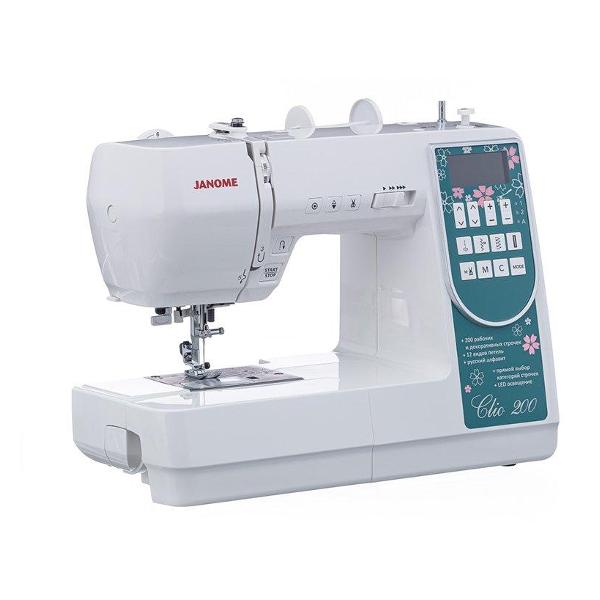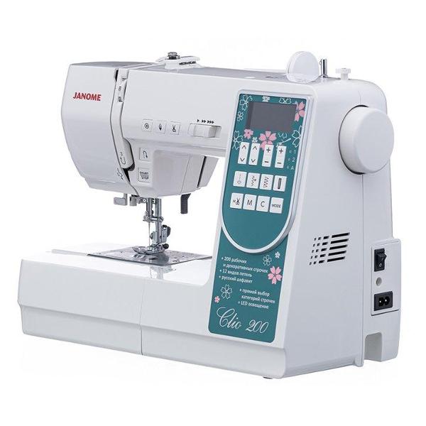 Швейная машина Janome Clio 200 работает со скоростью до 820 стеж/мин, создает стежки длиной до 5 мм и зигзаги шириной до 7 мм. Модель с компьютеризированным управлением оснащена челноком горизонтального типа. Доступны 300 операций, 150 декоративных, 20 рабочих и две потайные строчки. Предусмотрен экран, на который выводятся подсказки. Можно использовать реверс и функцию шитья без педали. Пластиковый корпус дополнен ручкой для переноски, отсеком для аксессуаров и LED-подсветкой. За подключение к розетке отвечает сетевой шнур 1 м, который можно отсоединять. Размеры — 30х18х41 см, вес — 8 кг.