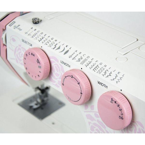Швейная машина Janome 25 розового цвета — простая и интуитивно понятная в использовании модель, которая подойдет начинающим и опытным швеям. Устройство действует с производительностью до 400 стежков/мин. На передней части корпуса располагаются поворотные переключатели, которыми можно выбрать нужный вариант операции, строчки, установить длину стежка вплоть до 4 мм, высоту подъема лапки до 10 мм.