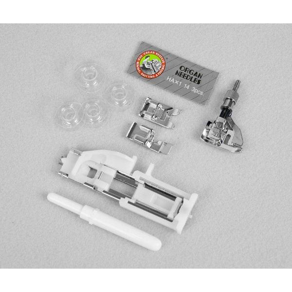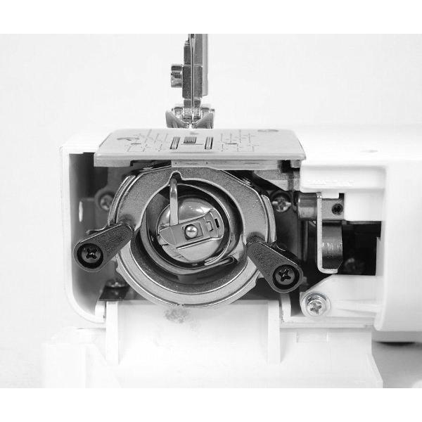 Светодиодная подсветка, механизм вдевания нити, увеличивают комфорт при эксплуатации. Машинка потребляет до 60 Вт электроэнергии. Шнур питания можно отсоединять, что дает возможность компактно хранить изделие. Размер — 29х18х39 см, вес — 7 кг.