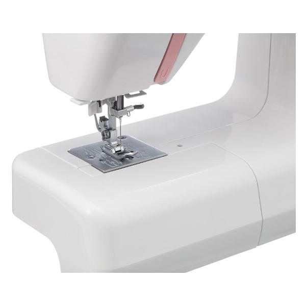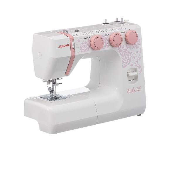 Швейная машина Janome 25 розового цвета — простая и интуитивно понятная в использовании модель, которая подойдет начинающим и опытным швеям. Устройство действует с производительностью до 400 стежков/мин. На передней части корпуса располагаются поворотные переключатели, которыми можно выбрать нужный вариант операции, строчки, установить длину стежка вплоть до 4 мм, высоту подъема лапки до 10 мм.