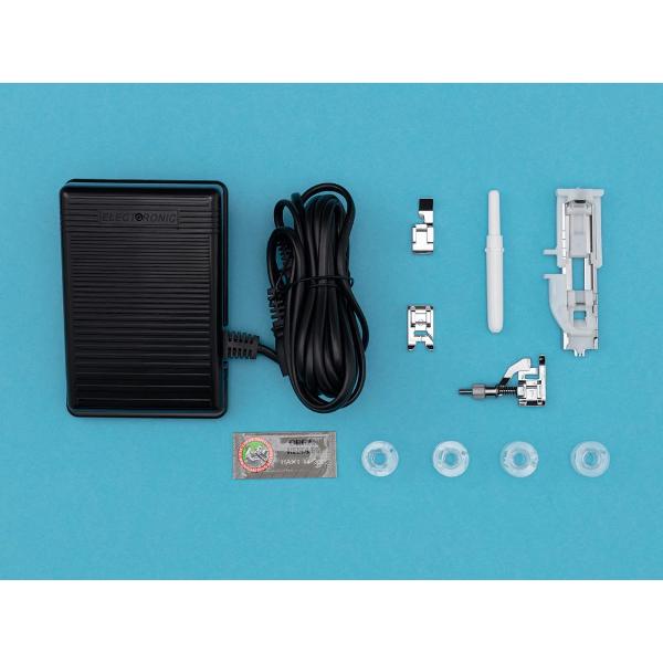 Светодиодная подсветка, механизм вдевания нити, увеличивают комфорт при эксплуатации. Машинка потребляет до 60 Вт электроэнергии. Шнур питания можно отсоединять, что дает возможность компактно хранить изделие. Размер — 29х18х39 см, вес — 7 кг.