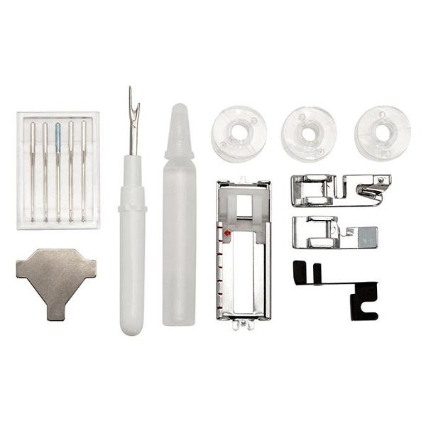 Габариты модели — 32х17,5х39,5 см. Вес изделия — 6,8 кг. Длина стежка варьируется от 0 до 4 мм. Пластиковый корпус оснащен ручкой для переноски, отсеком для принадлежностей и прорезиненными нескользящими ножками. Параметры выставляются с помощью поворотных переключателей.