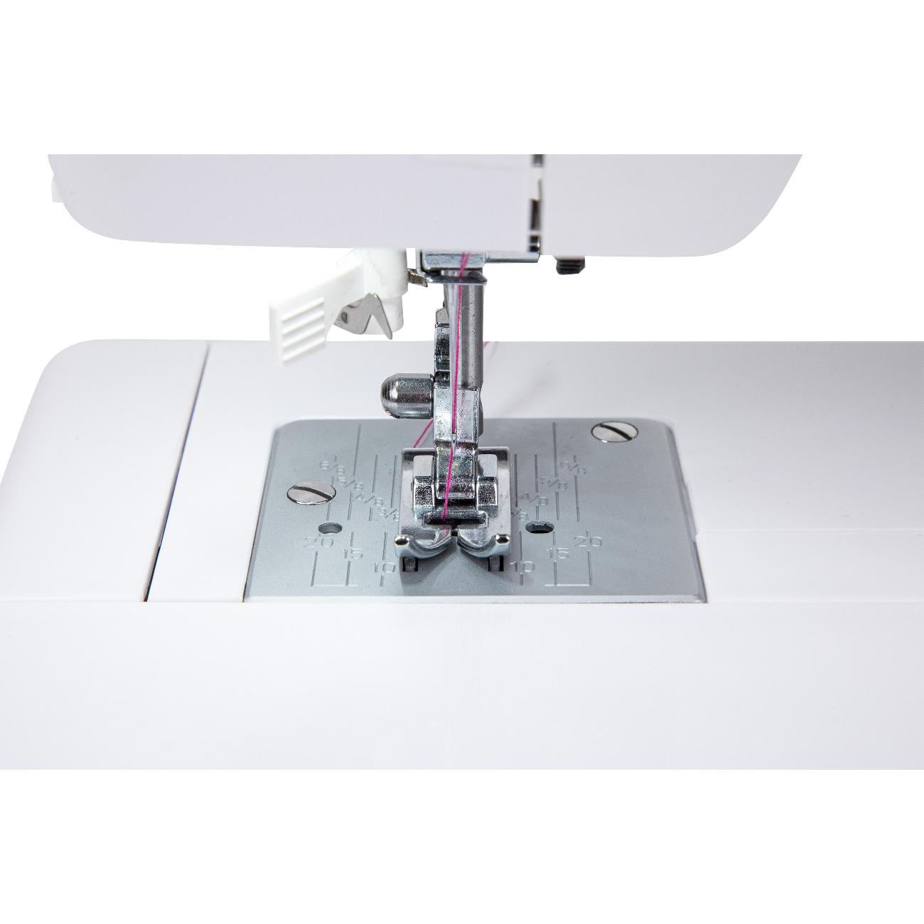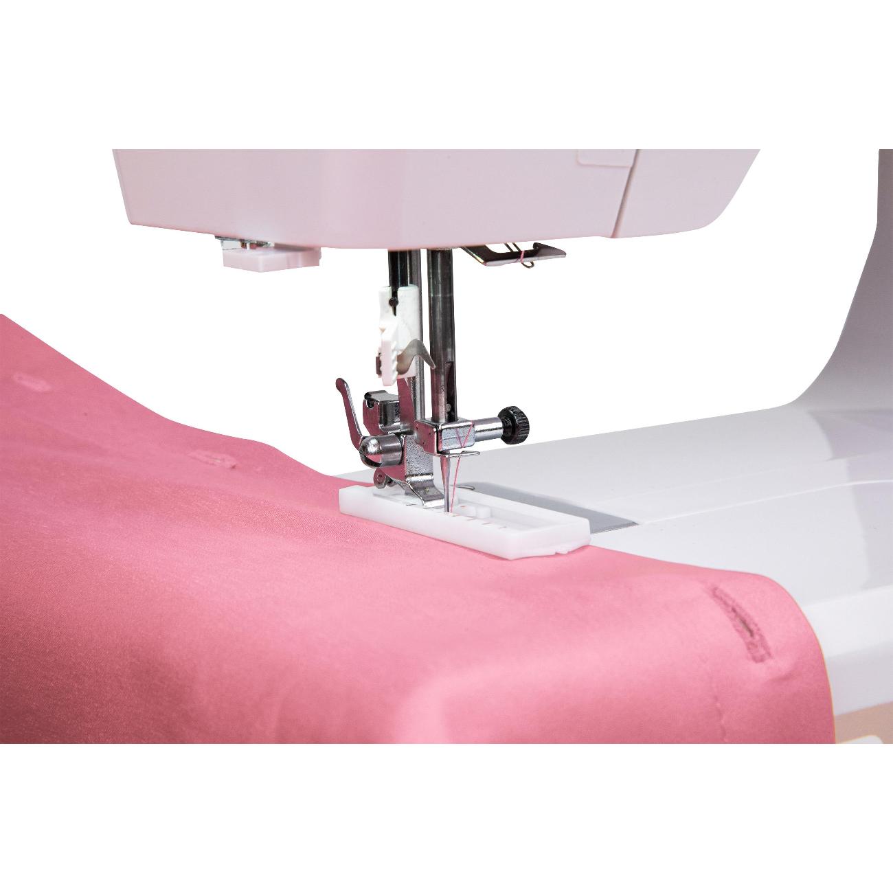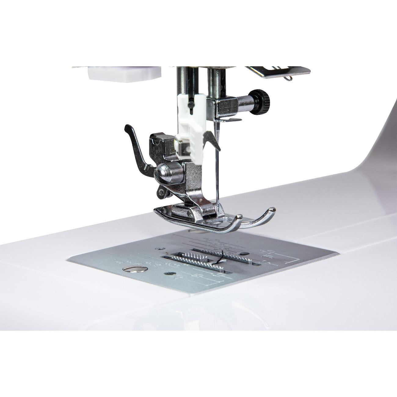 Можно регулировать скорость шитья. Много трикотажных строчек. Машина мощная, для бытовой, но легкая в использовании.