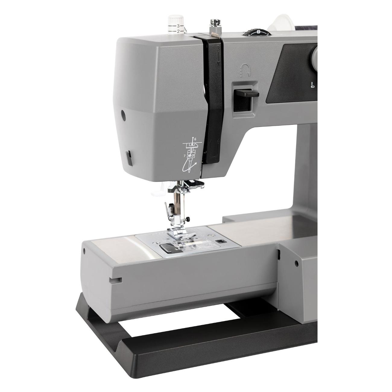Искала более мощную машину, не промышленную, а именно полубытовую и, вот, нашла. Мощный двигатель, при этом тихая работа, отличный дополнительный столик, не шатается. Кстати, рукав длиннее, чем в других бытовых машинах, можно добраться до трудных мест. Сгибы по эко коже прошила в 4-ре слоя, как по маслу. Рекомендую.