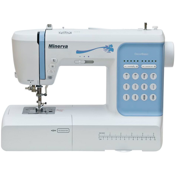Швейная машина Minerva DecorBasic выполняет 12 видов операций. Она создаёт рабочие, декоративные, петельные и оверлочные строчки. Удобная панель управления позволяет плавно менять длину и ширину стежка.