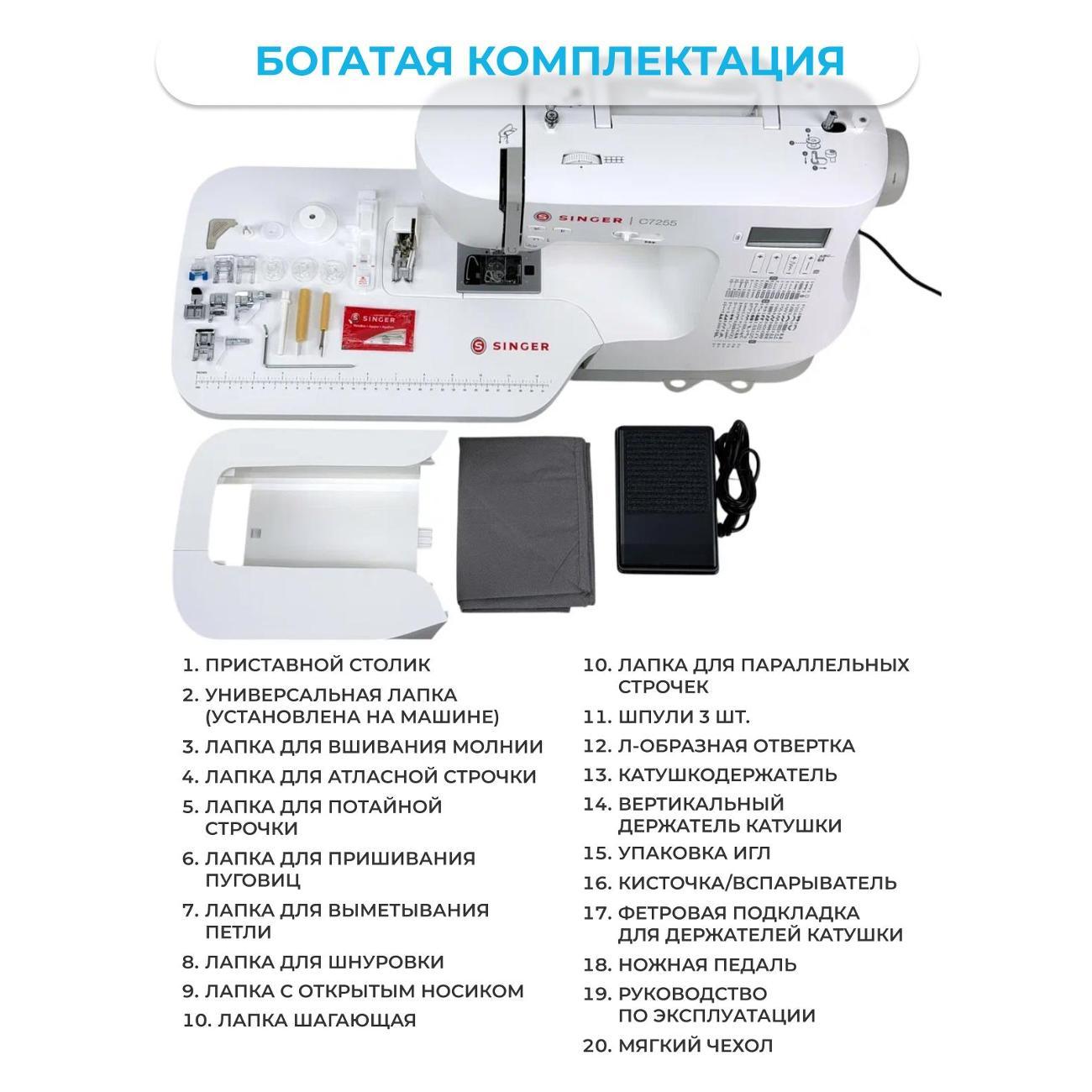 Вы можете купить Швейная машина Singer C 7255 в магазинах М.Видео по доступной цене. Швейная машина Singer C 7255: подробное описание, фото и отзывы реальных покупателей, характеристики, возможность скачать инструкции и подобрать аксессуары.