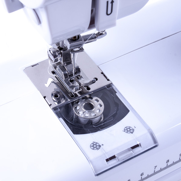 Длина стежка, уровень натяжения нити и скорость регулируются. Лапка поднимается на высоту до 10 мм, так что будет удобно работать и с тонкими, и с довольно плотными тканями. Игла позиционируется вручную, есть встроенный обрезчик. На переднюю часть корпуса нанесена линейка, которая облегчит выполнение прямых швов. Функция «Реверс» прочно закрепит результаты ваших трудов. Проработать мелкие детали поможет встроенная светодиодная подсветка.