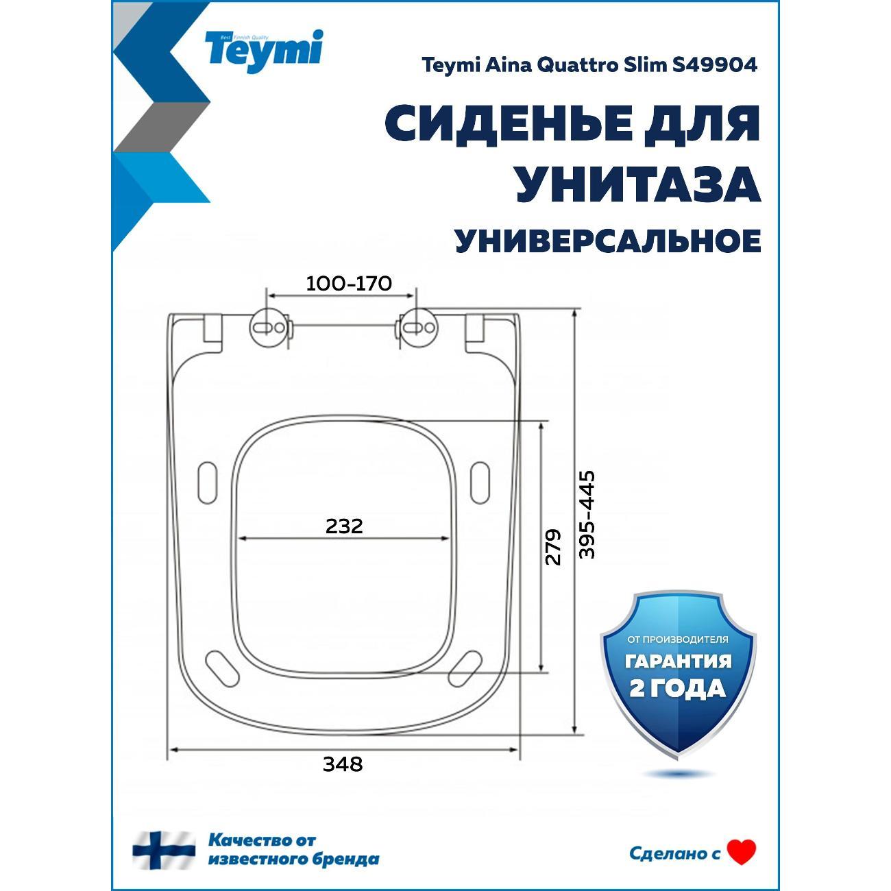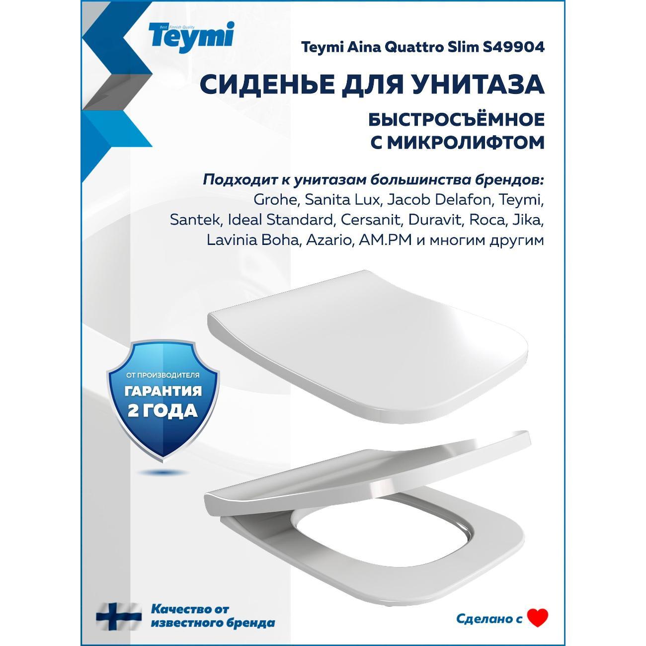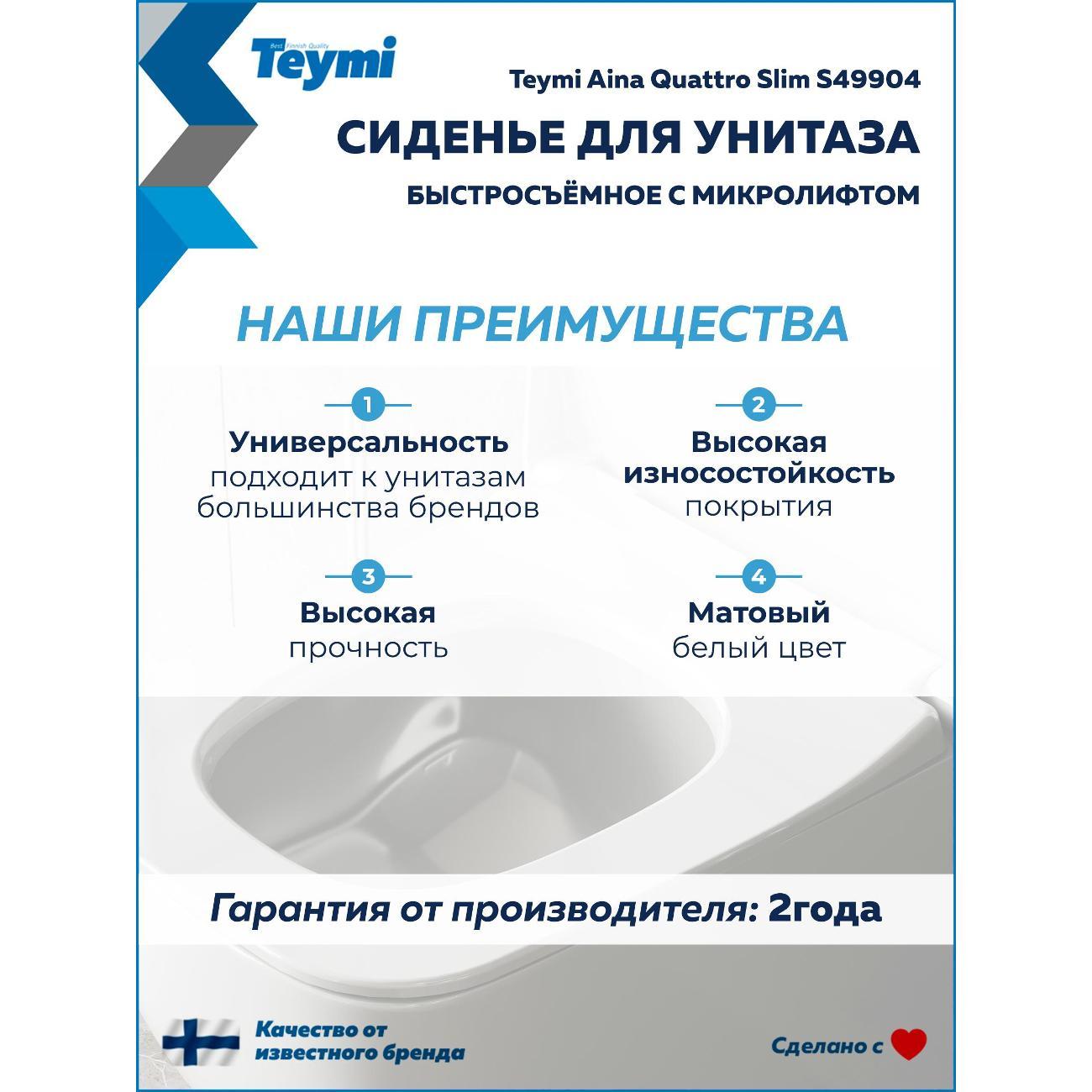 Вы можете купить Сиденье для унитаза с крышкой Teymi Aina Quattro Slim S49904 в магазинах М.Видео по доступной цене. Сиденье для унитаза с крышкой Teymi Aina Quattro Slim S49904: подробное описание, фото и отзывы реальных покупателей, характеристики, возможность скачать инструкции и подобрать аксессуары.