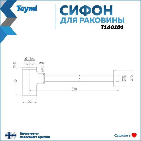 Сифон Teymi для раковины, черный матовый. Сифон Teymi для раковины, черный матовый, с артикулом производителя T140101 — это высококачественное сантехническое оборудование, предназначенное для использования в ванной комнате. Изготовленный из прочного и долговечного цинка, этот сифон обладает надежностью и долговечностью. Черный матовый цвет придает сифону элегантный и современный вид, который идеально впишется в любой интерьер ванной комнаты. Матовая отделка также помогает скрыть отпечатки пальцев и водные пятна, что делает его легким в уходе и сохраняет его привлекательный внешний вид на протяжении длительного времени. Сифон Teymi обладает высокой скоростью слива воды, достигающей 52 литров в минуту, что обеспечивает эффективное и беспроблемное использование. Диаметр отвода составляет 32 мм, а диаметр отверстия раковины может варьироваться от 45 до 52 мм, что делает его универсальным и подходящим для большинства раковин. Этот сифон поставляется с гарантией на 2 года, что подтверждает его высокое качество и надежность. Он производится в Китае, стране, известной своим качественным сантехническим оборудованием, и является продуктом бренда Teymi, который является частью финского бренда, известного своими инновационными и стильными решениями в области сантехники. В целом, сифон Teymi для раковины, черный матовый, представляет собой превосходный выбор для тех, кто ищет надежное, стильное и эффективное сантехническое оборудование для своей ванной комнаты. Он сочетает в себе высокое качество материалов, элегантный дизайн и удобство использования, делая его идеальным выбором для современных домов и офисов. Характеристики: - Артикул производителя: T140101; - Тип изделия: сифон для раковины; - Область применения: ванная комната; - Материал изготовления: цинк; - Цвет: черный; - Покрытие: матовое; - Скорость слива воды: 52 л/мин; - Диаметр отвода: 32 мм; - Диаметр отверстия раковины: 45–52 мм; - Гарантия: 2 года; - Страна производства: Китай; - Страна бренда: Финляндия; - Бренд: Teymi.