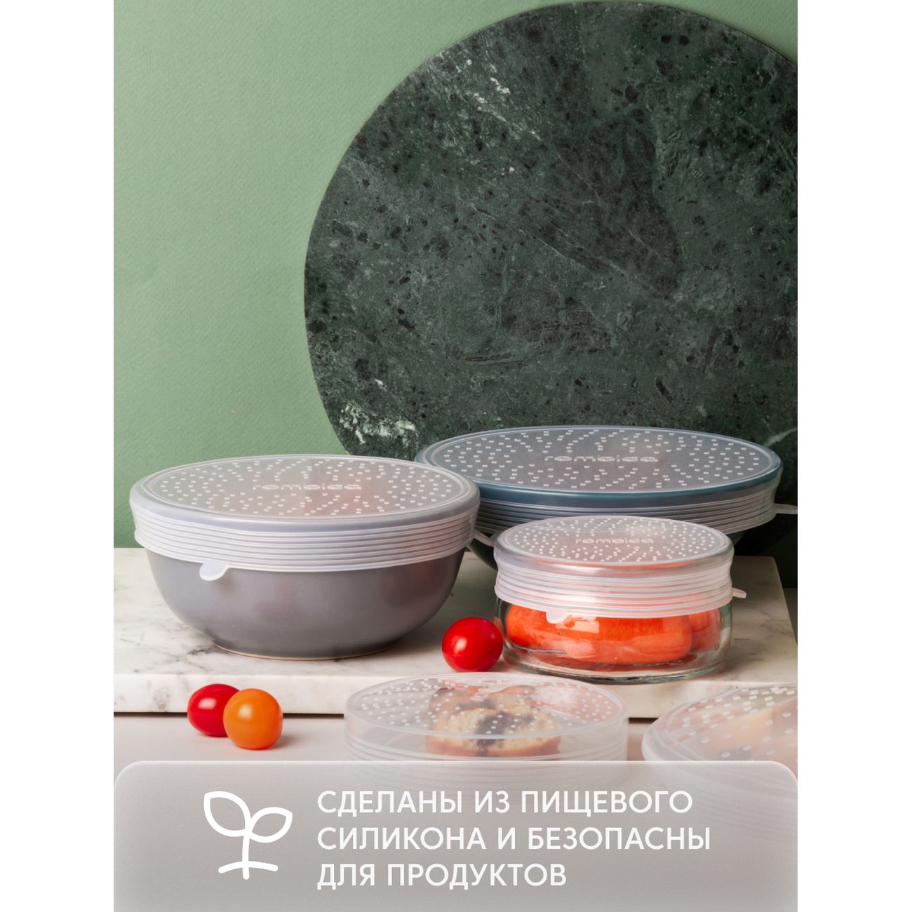 Лучшая моя покупка, набор хороший, помогает решить проблему крышек, когда емкостей много, а крышек нет или емкости такие, куда крышки не подойдут. Для овощей, фруктов, во время готовки очень помогают эти крышки, надеваются удобно и просто, сидят плотно, если подходят по размеру. Просто влюбилась в них, покупайте, то что надо.