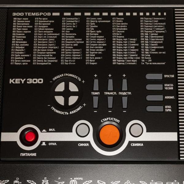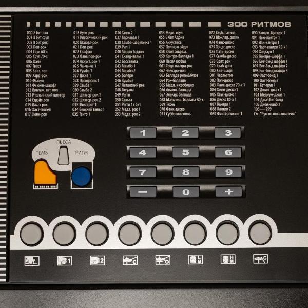 Воспроизводит более 300 тембров и 300 ритмов различных музыкальных направлений.