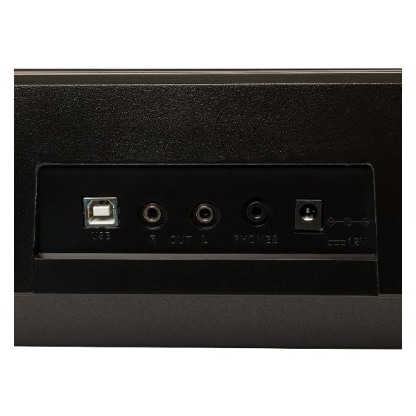 Синтезатор обладает разъемами для наушников и внешней аудиосистемы. Подключение к компьютеру осуществляется посредством порта USB. Потребляемая мощность — 6 Вт. В комплекте поставляется подставка для нот.