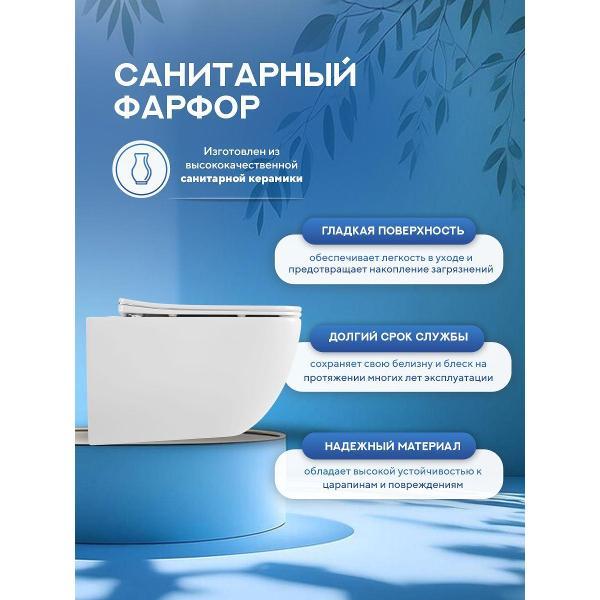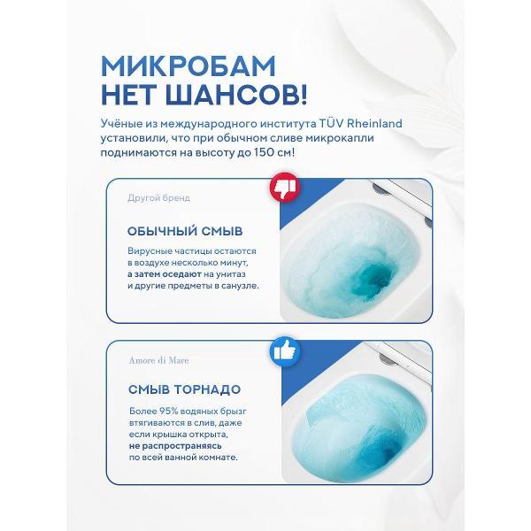 Комплект 7 в 1: инсталляция TECE 9400413 + унитаз Amore di Mare Bacino Tornado P210-T + сиденье микролифт Инсталляция TECE base 2.0: прочная и надежная система скрытого монтажа Подвесной безободковый унитаз Amore di Mare: гигиеничность и удобство ухода Сиденье с микролифтом: плавное закрытие крышки и бесшумная работа Кнопка слива с двумя режимами: экономичный и стандартный режимы Встроенный скрытый бачок для воды: бесшумный и надежный слив Комплект крепежных элементов: безопасность и долговечность конструкции Материал: санфарфор с антибактериальным, водоотталкивающим и грязезащитным покрытием Особенности: антивсплеск, антигрязевое покрытие, безободковая конструкция, быстросъемное сидение с микролифтом, воронка-водоворот, торнадо-смысл, механический механизм слива, две кнопки (полный + эконом) Комплектация: инсталляция, звукоизоляционная пластина, кнопка смыва, бачок для воды, подвесной безободковый унитаз, быстросъемное сиденье с микролифтом, комплект креплений для монтажа