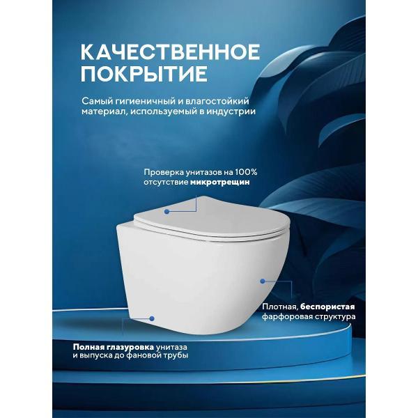Инсталляция с унитазом 7 в 1: инсталляция TECE 9400413 + унитаз Amore di Mare Delio Tornado P203-T + сиденье микролифт Подвесной безободковый унитаз Amore di Mare Delio Tornado сочетает в себе современный итальянский дизайн и передовые технологии для обеспечения максимального комфорта и гигиены. Элегантный белый цвет унитаза гармонично впишется в любой интерьер ванной комнаты. Унитаз изготовлен из прочного санитарного фарфора, который обеспечивает долговечность и надежность в использовании. Благодаря антибактериальному покрытию сиденья BioSafe достигается высокая степень гигиеничности. Одной из ключевых особенностей модели является сиденье с микролифтом SoftClose, которое обеспечивает плавное и бесшумное закрытие крышки, предотвращая повреждения и обеспечивая дополнительный комфорт. Унитаз оснащен быстросъемным сиденьем, что упрощает процесс установки и ухода за изделием. Унитаз Amore di Mare имеет компактные размеры, что позволяет экономить пространство в ванной комнате. Несмотря на свои небольшие габариты, модель выдерживает нагрузку до 400 кг, что говорит о ее прочности и надежности. Мощный круговой смыв обеспечивает эффективное и полное удаление загрязнений, поддерживая чашу в идеальной чистоте. Система антивсплеск предотвращает разбрызгивание воды, что способствует комфортному использованию и уменьшает необходимость в частой уборке. Комплектация: инсталляция, шумоизоляция, кнопка смыва, бачок для воды, подвесной безободковый унитаз, быстросъемное сиденье с микролифтом, 6 креплений для монтажа. Особенности: антивсплеск, антигрязевое покрытие, безободковый, быстросъемное сидение, микролифт, организация сливного потока: воронка-водоворот. Покрытие: антибактериальное, водоотталкивающее, глянцевое, грязезащитное, устойчивое к царапинам. Сиденье с микролифтом. Глубина: 49.0 см. Вес: 43.0 кг. Механизм слива: механический. Режим слива: две кнопки (полный + эконом). Комплект инсталляции: да. Скрытый монтаж: да. Установка бачка: скрытая