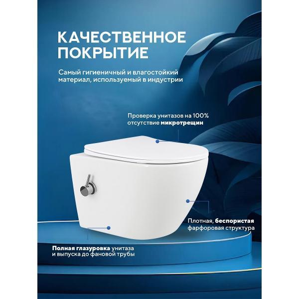Инсталляция с унитазом 7 в 1: инсталляция TECE 9400412 + унитаз Amore di Mare Lenza Tornado Bidet P252-XT Подвесной безободковый унитаз Amore di Mare сочетает в себе современный итальянский дизайн и передовые технологии для обеспечения максимального комфорта и гигиены. Унитаз изготовлен из прочного санитарного фарфора, который обеспечивает долговечность и надежность в использовании. Благодаря антибактериальному покрытию сиденья BioSafe, достигается высокая степень гигиеничности, что особенно важно для поддержания чистоты в помещении. Одной из ключевых особенностей модели является сиденье с микролифтом SoftClose, которое обеспечивает плавное и бесшумное закрытие крышки, предотвращая повреждения и обеспечивая дополнительный комфорт. Унитаз оснащен быстросъемным сиденьем, что упрощает процесс установки и ухода за изделием. Комплектация: бачок, инсталляция, звукоизоляционный комплект, монтажный набор креплений, панель смыва, сиденье, чаша унитаза. Особенности: антивсплеск, антигрязевое покрытие, безободковый, быстросъемное сидение, микролифт. Организация сливного потока: торнадо. Покрытие: антибактериальное, водоотталкивающее, грязезащитное, защитное, устойчивое к царапинам. Функции: антивсплеск, микролифт, экономный режим, функция биде. Цвет для фильтра: хром. Высота инсталляции: 112 см. Комплект инсталляции: да. Скрытый монтаж: да. Тип: унитаз с инсталляцией. Подвод воды: скрытый. Выпуск: горизонтальное (в стену). Вес: 43 кг. Инсталляция с унитазом 7 в 1: инсталляция TECE 9400412 + унитаз Amore di Mare Lenza Tornado Bidet P252-XT - это современное и функциональное решение для вашей ванной комнаты.