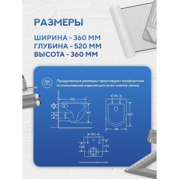 Одной из ключевых особенностей модели является сиденье с микролифтом SoftClose, которое обеспечивает плавное и бесшумное закрытие крышки, предотвращая повреждения и обеспечивая дополнительный комфорт. Унитаз оснащен быстросъемным сиденьем, что упрощает процесс установки и ухода за изделием.