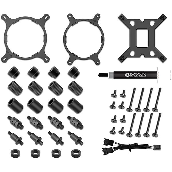 Система охлаждения для процессора ID-Cooling ZoomFlow 240 XT оборудована водоблоком размером 58x72x72 мм для более эффективного отведения горячего воздуха. Встроено два вентилятора диаметром 120 мм с ARGB-подсветкой. Максимальная мощность воздушного потока составляет 68,2 CFM. Скорость вращения лопастей вентилятора автоматически настраивается от 500 до 1500 об/мин в зависимости от загрузки процессора. Устройство способно рассеивать до 250 Вт тепловой энергии. Материал радиатора — алюминий. Габариты все системы охлаждения составляют 27x120x274 мм.