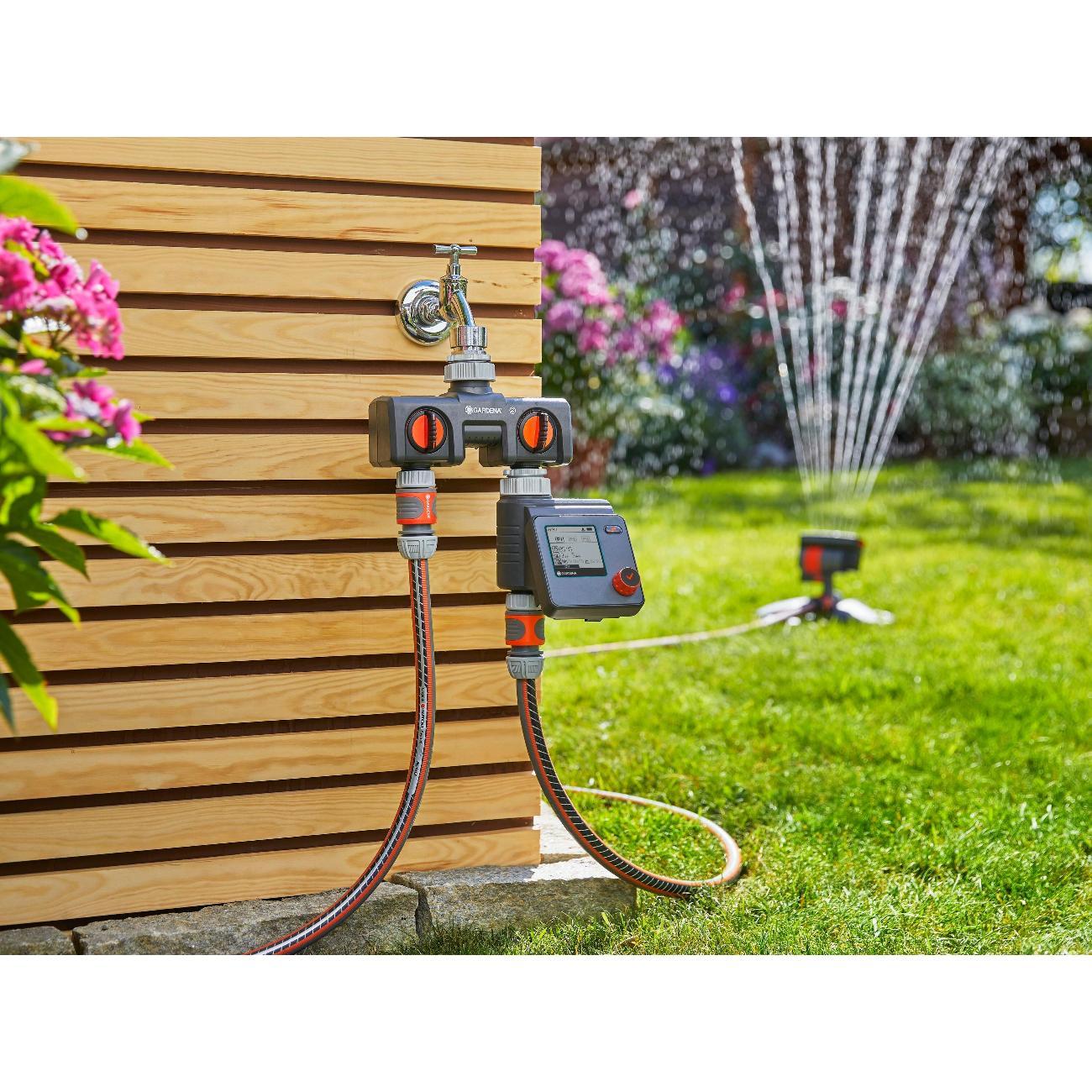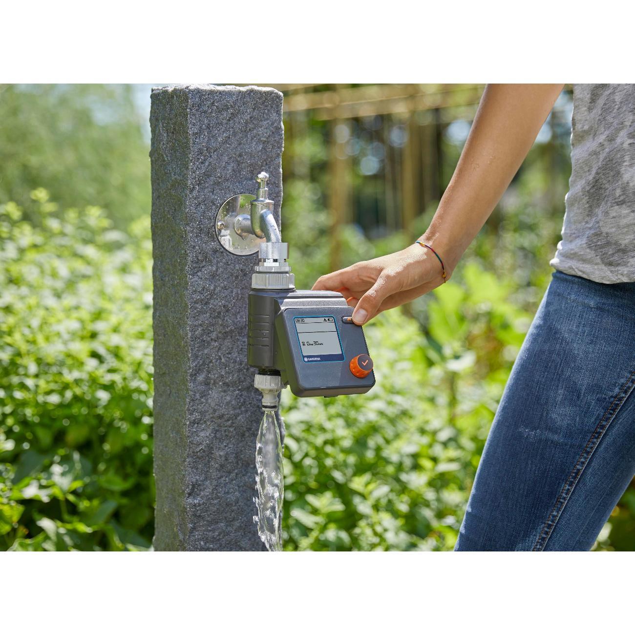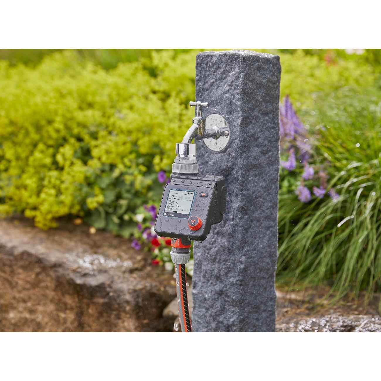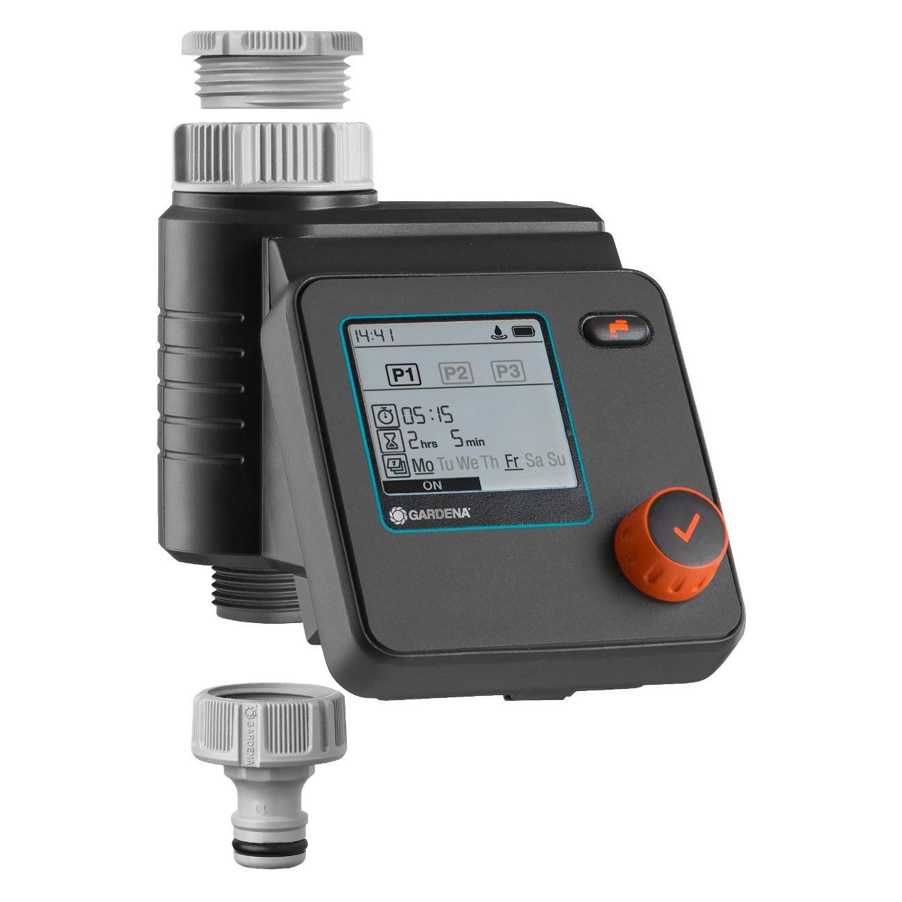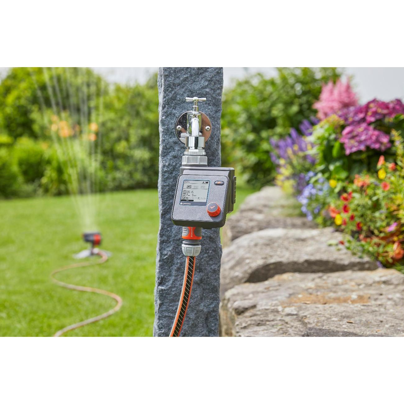 Индивидуальные настройки 6 независимых расписаний полива, интуитивно понятное управление при помощи одной кнопки - поворотная кнопка (поворот - для выбора настроек, нажатие - для подтверждения выбора). Централизованное уменьшение продолжительности полива всех расписаний в зависимости от сезона, функция "остановки во время дождя", контроль до 6 линий полива с помощью автоматического распределителя воды (арт. 1197 - покупается отдельно). Питание - 1 щелчная батарейка типа крона 9 В (не входит в комплект), ЖК-дисплей с гибким текстовым меню, 6 запрограмированных расписаний (начало полива, продолжительность, частота). Время старта настраивается, продолжительность полива от 1 мин. до 4 ч., съемная панель управления, совместимость с датчиком влажности почвы, функция ручной полив с автоматической остановкой, индикатор заряда батерейки, технология безопасной остановки safe stop, защита от детей (блокировка/разблокировка экрана), устойчив к погодным условиям. Сделано в Германии.