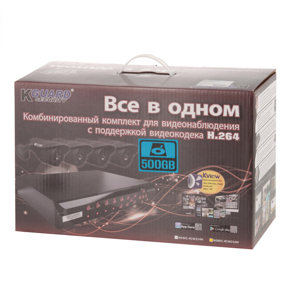 Комплект система видеонаблюдения NS801-4CW214H (4 камеры, 8-канальная, HDD 500 ГБ, видеорегистратор, блоки питания, ПДУ, мышь, кабели)