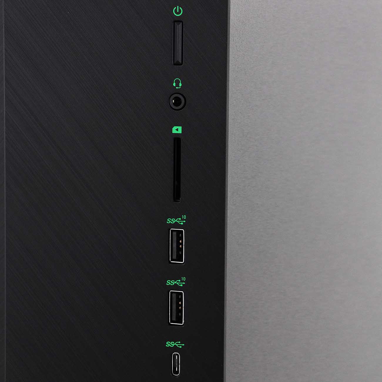 Для хранения файлов сборка использует жёсткий диск, рассчитанный на хранение 1 Тб данных, а также SSD-накопитель ёмкостью 128 Гб. Помимо прочего, системник располагает необходимыми для ежедневной работы и развлечений разъёмами. Создатели оборудовали его интерфейсами USB 3.1 и 3,5 мм для подключения наушников или микрофона и кардридером.