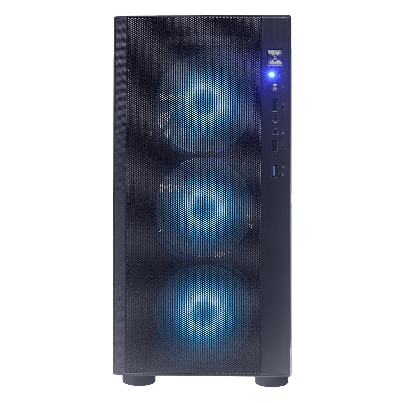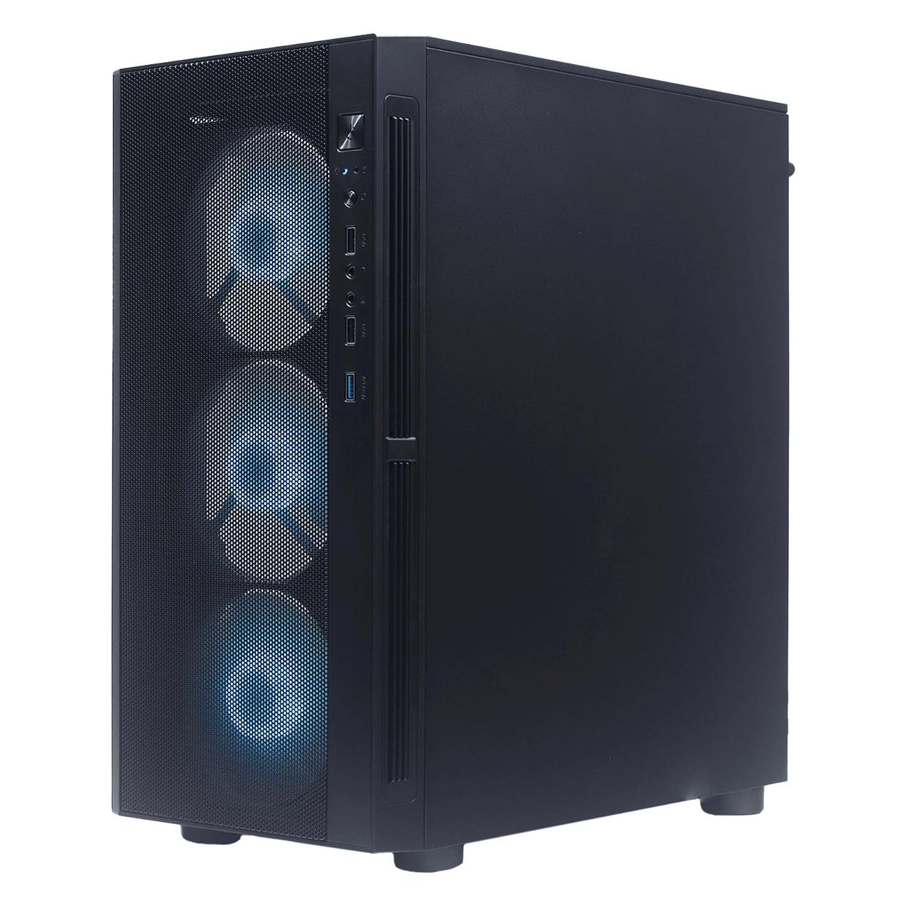 Системный блок поставляется с 16 Гб оперативной памяти четвертого поколения — частота достигает 3200 МГц. За счет двух слотов ее объем можно увеличить до 64 Гб. Набор интерфейсов представлен LAN-разъемом, портами USB 2.0, 3.0 и 3.2, выходами HDMI, VGA, разъемом 3,5 мм для наушников/микрофона.
