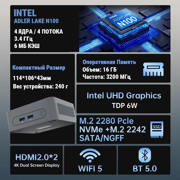 Подошел идеально для офисной работы, вообще не тупит. Запускаю 1С, браузер, excel и редко фотошоп. Установлена windows 11, а работал до этого на 10ке - пришлось чуть разобраться. Особенно понравилось, что в наборе было крепление на монитор сзади, что позволило убрать все провода за моник и освободить стол. Вообщем однозначно лайк!