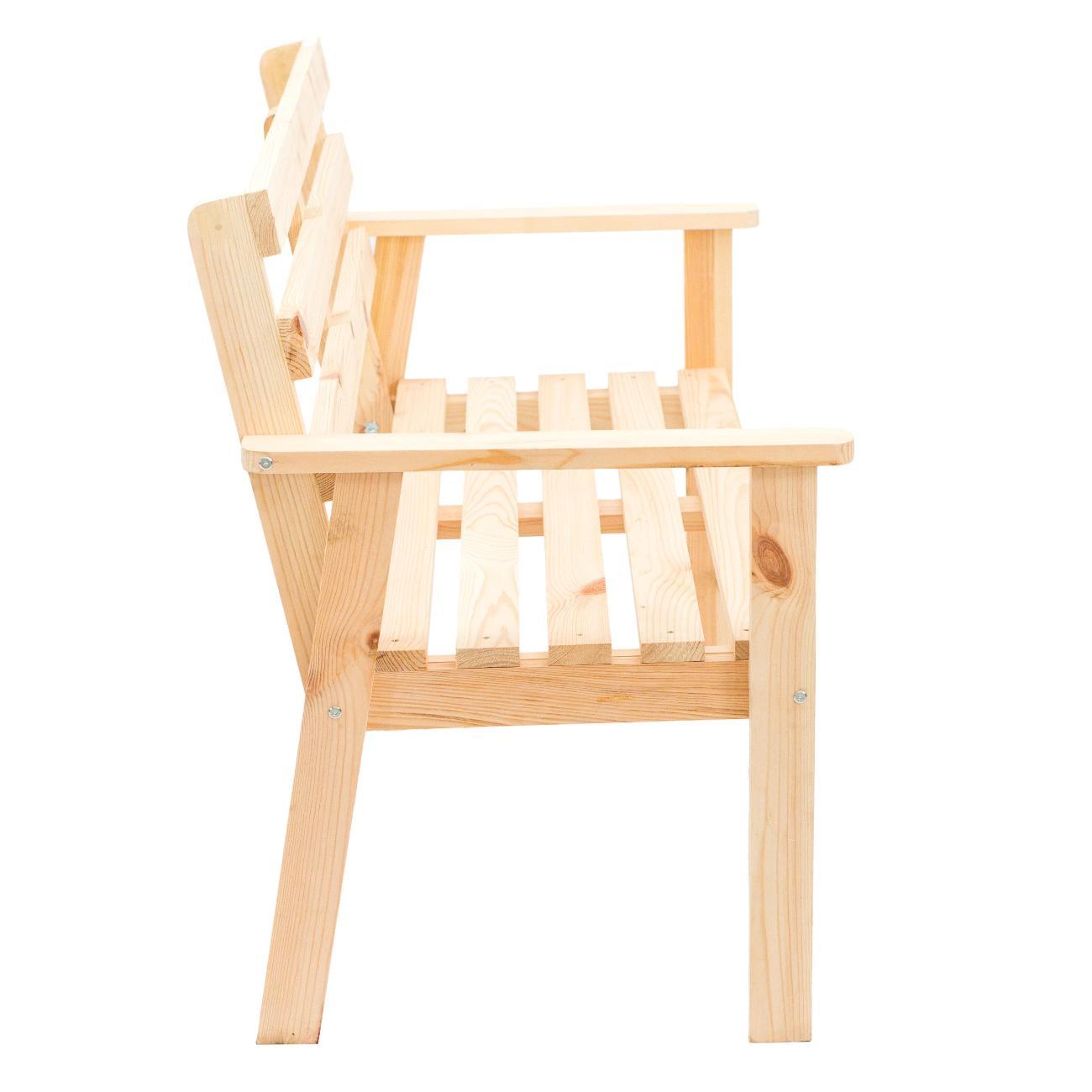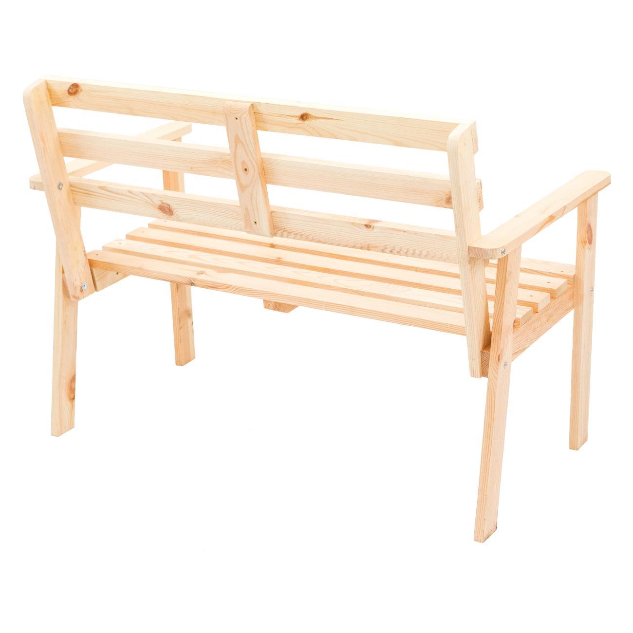 Практичная садовая скамья из массива сосны. Поверхность дерева отшлифована и подготовлена под покраску. Скамья Грета прекрасно впишется в интерьер загородного дома, бани, сауны или летней веранды. Для увеличения срока эксплуатации изделия рекомендуем покрыть поверхность защитным составом для наружных работ.