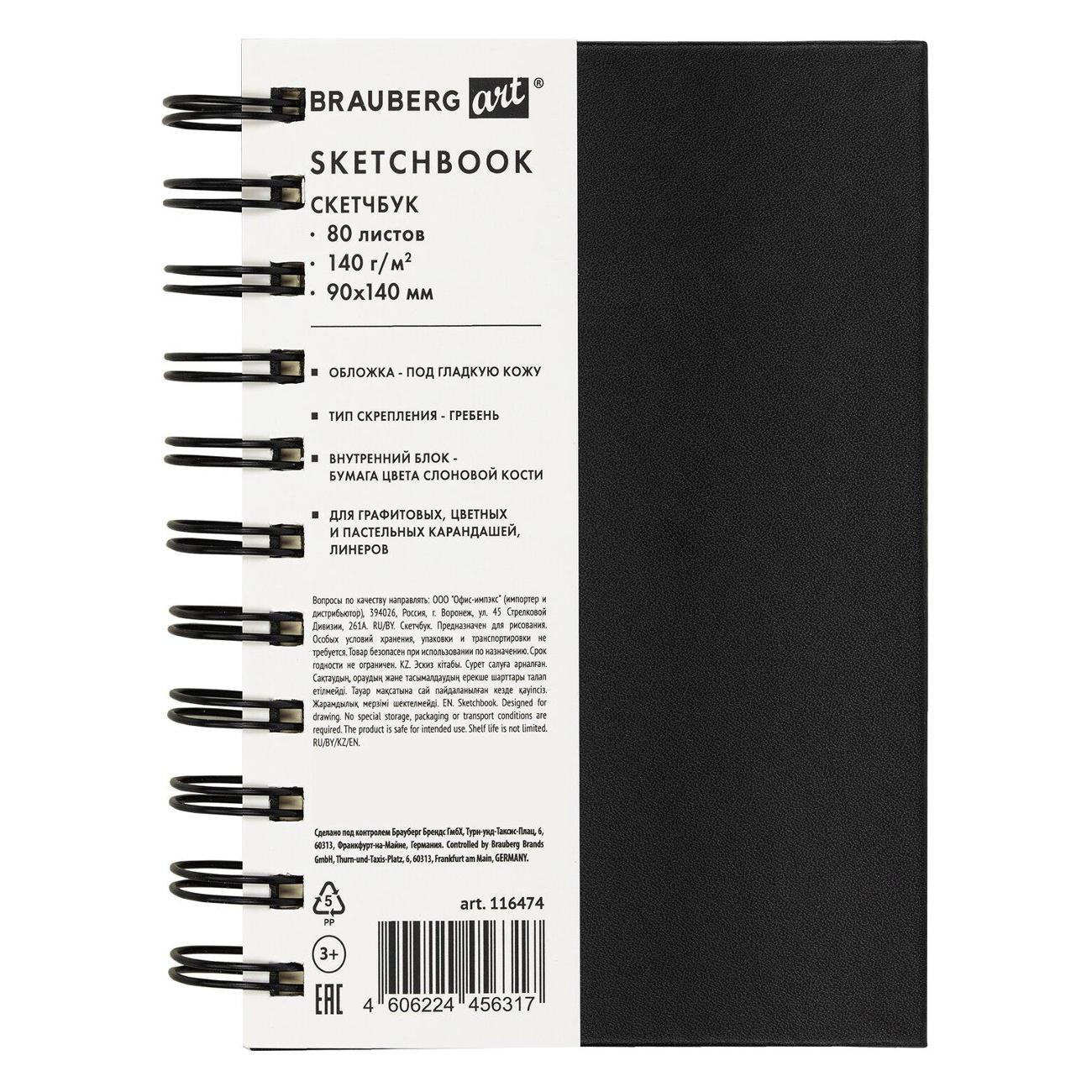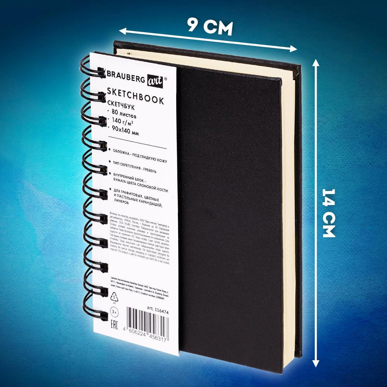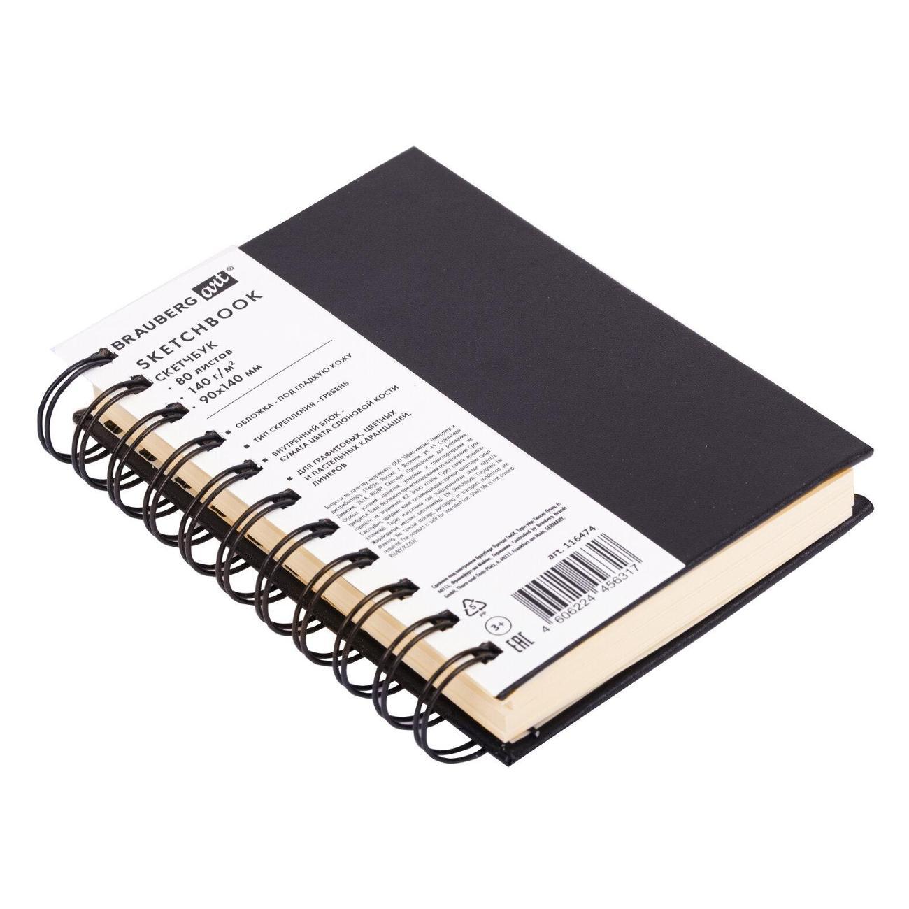 Скетчбук BRAUBERG ART "CLASSIC" подходит для эскизов, графики, набросков, каллиграфии, леттеринга, скетчинга и записей. Компактный скетчбук с жесткой обложкой скреплен при помощи евроспирали, что позволяет открывать его на 360 градусов. Внутренний блок – 80 листов специальной художественной тонированной бумаги цвета "слоновая кость" плотностью 140 г/м2.