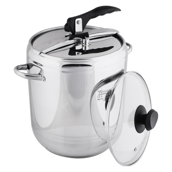 Скороварка Home Perfect 80469 объемом 12 л выполнена из стали, устойчивой к образованию коррозии. Толстое дно равномерно распределяет тепло по всей рабочей области. Высота стенок составляет 43 см. Модель предназначена для нагрева на любых видах конфорок. В комплекте идет крышка с клапаном для выпуска пара, оснащенная бакелитовой термоизолированной ручкой. Загрязнения с поверхности посуды легко удаляются при помощи неабразивной губки и специальных чистящих средств, также скороварку можно мыть в посудомоечной машине.