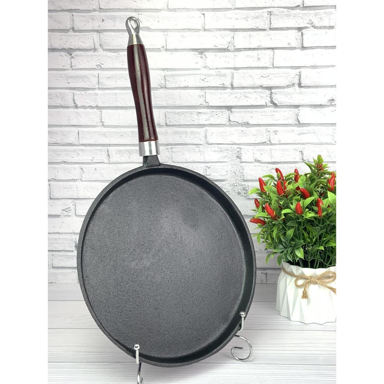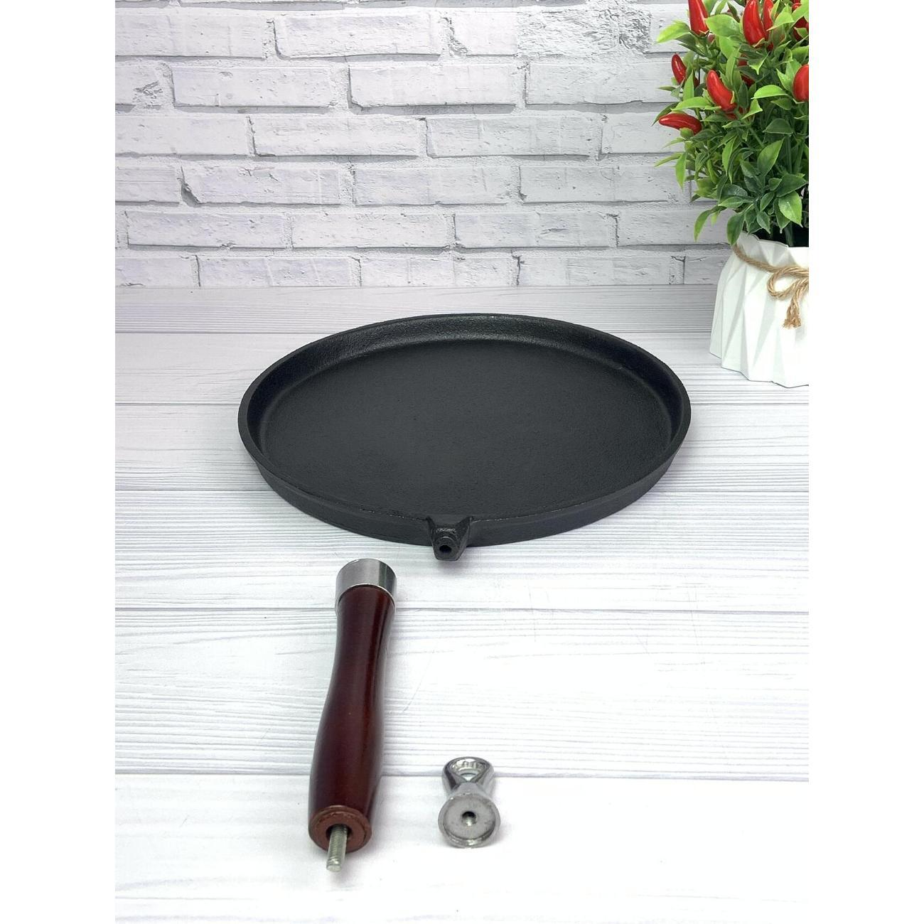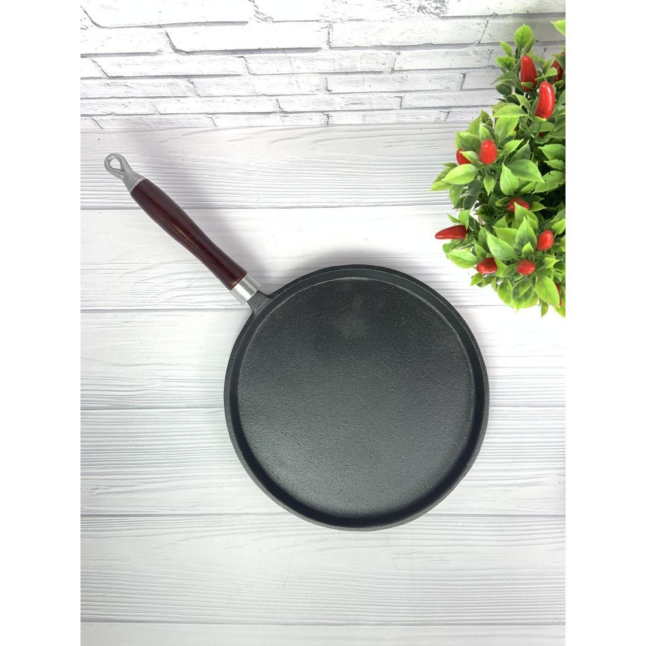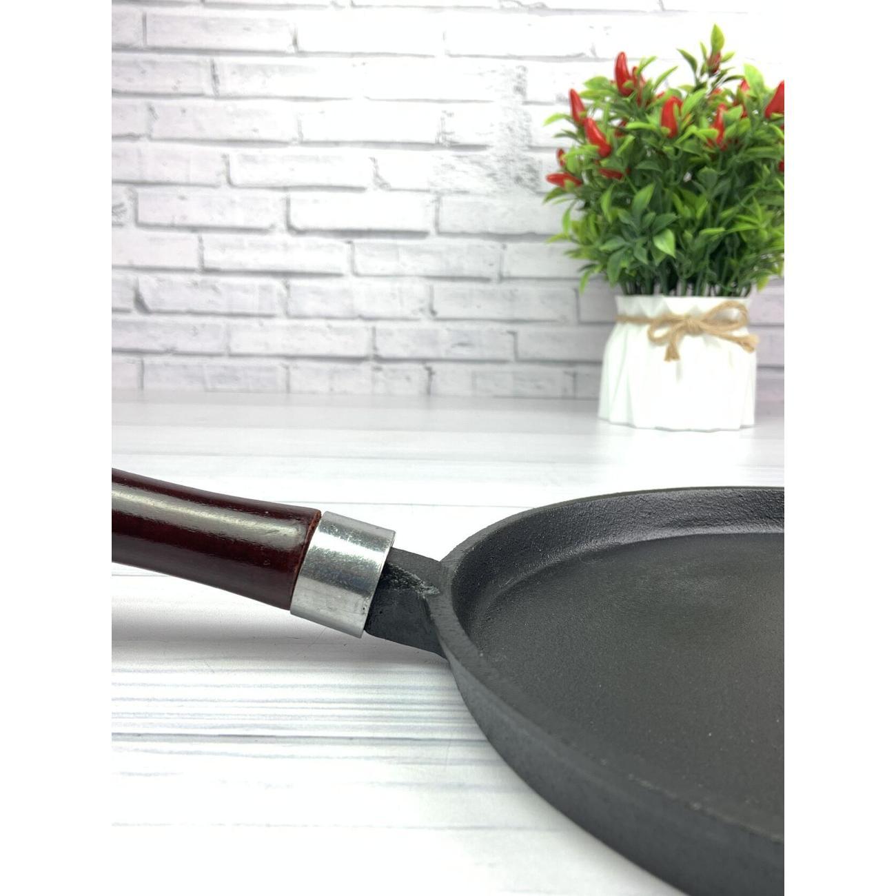 Сковорода блинная чугунная для приготовления блинов и оладий 24 см для всех видов плит, включая индукционную со съемной деревянной ручкой.