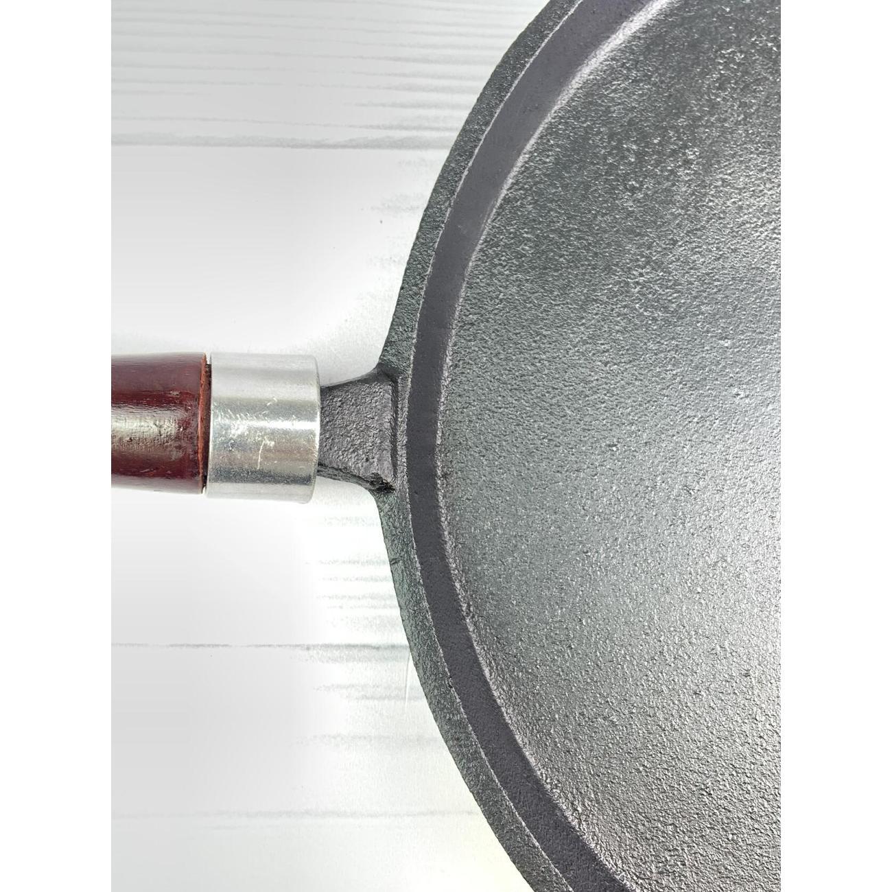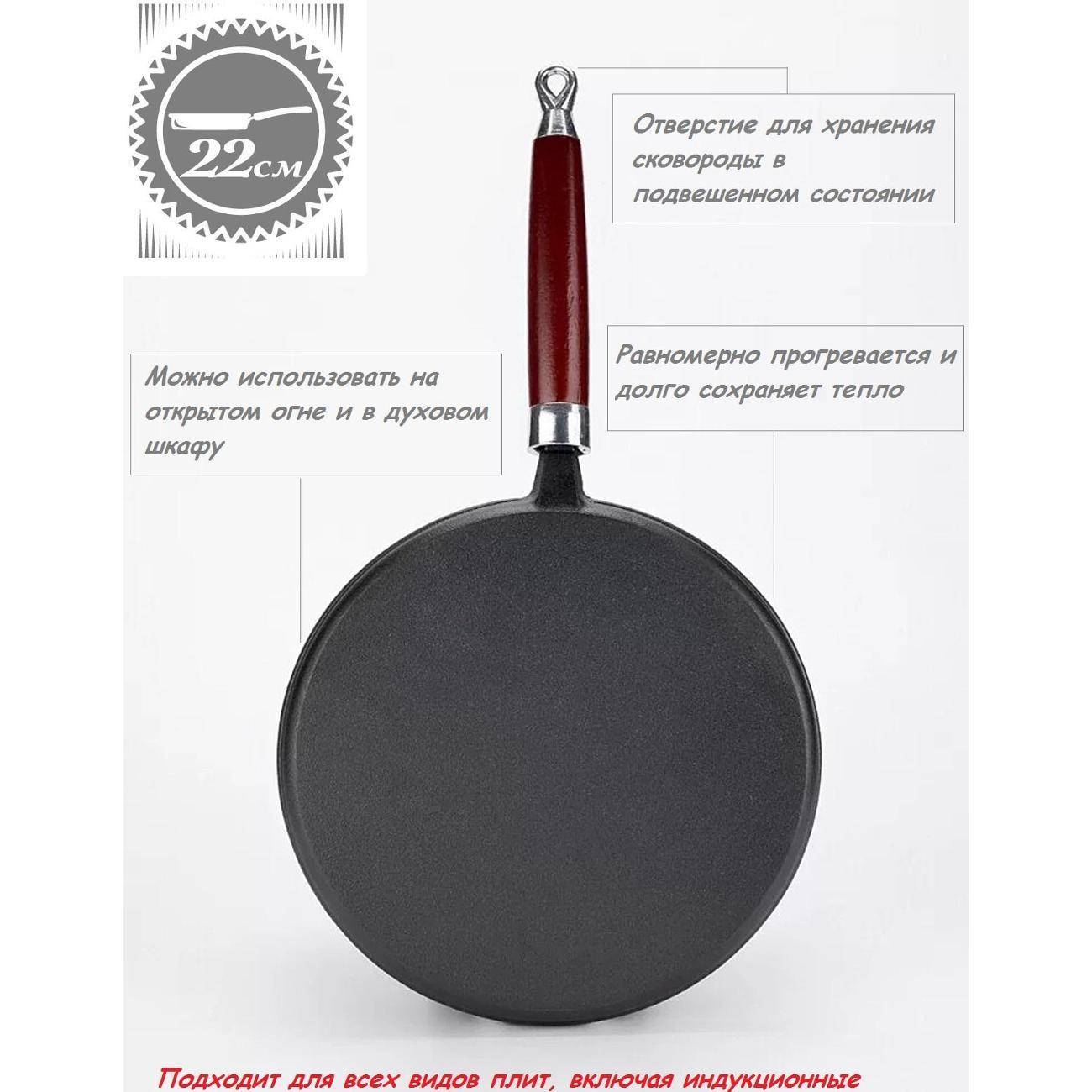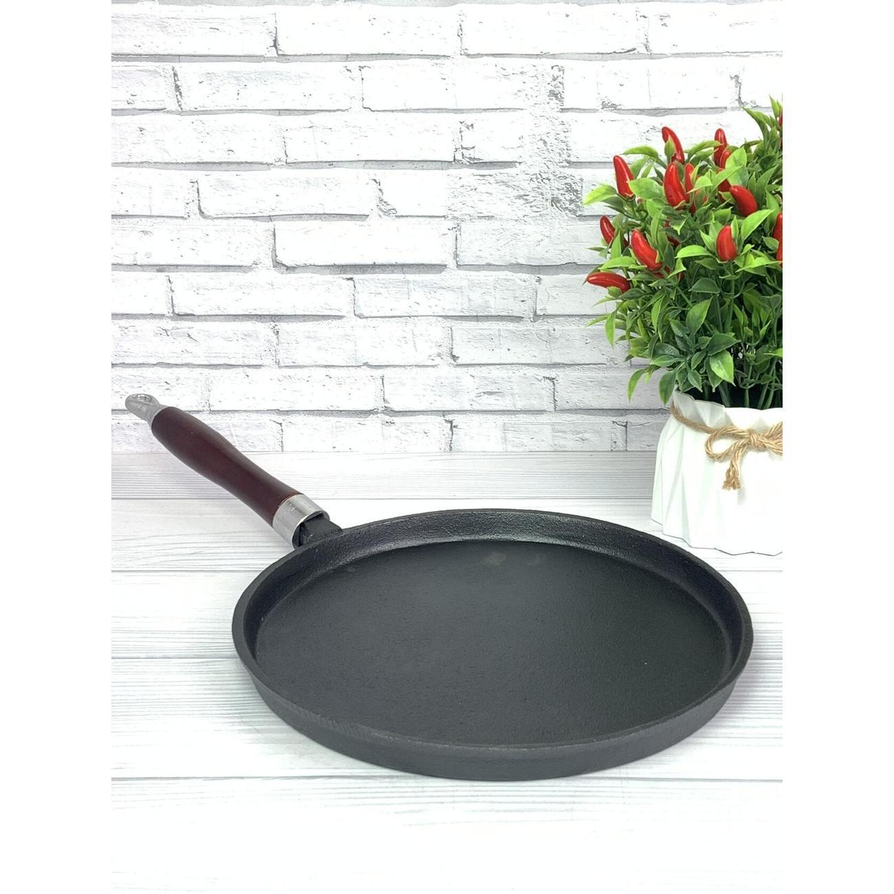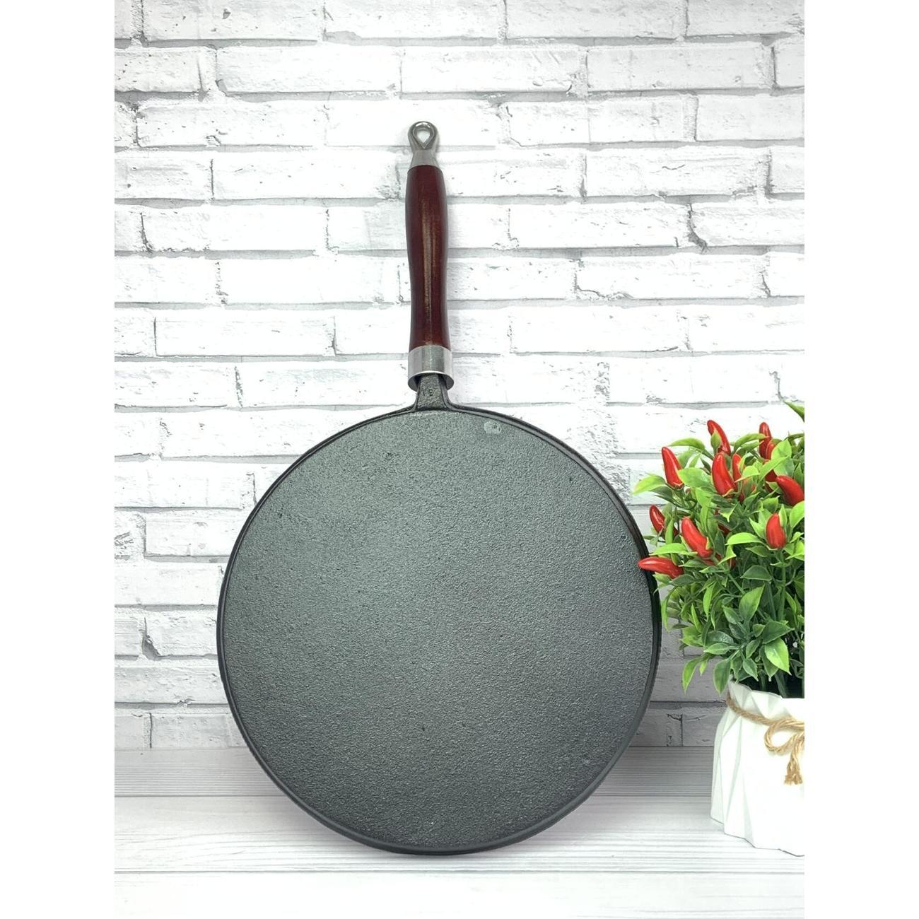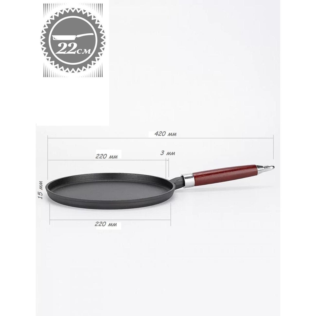 Сковорода блинная чугунная для приготовления блинов и оладий 24 см для всех видов плит, включая индукционную со съемной деревянной ручкой.