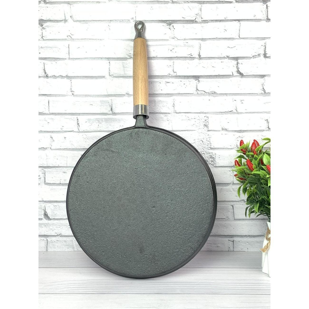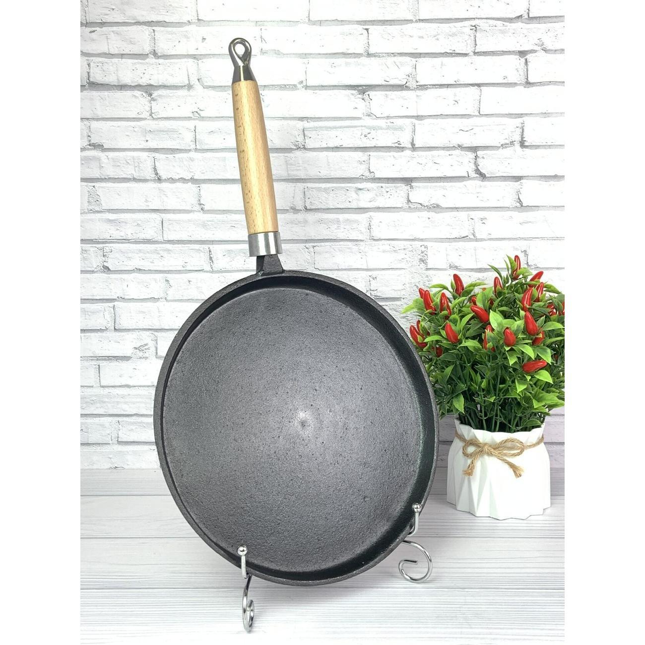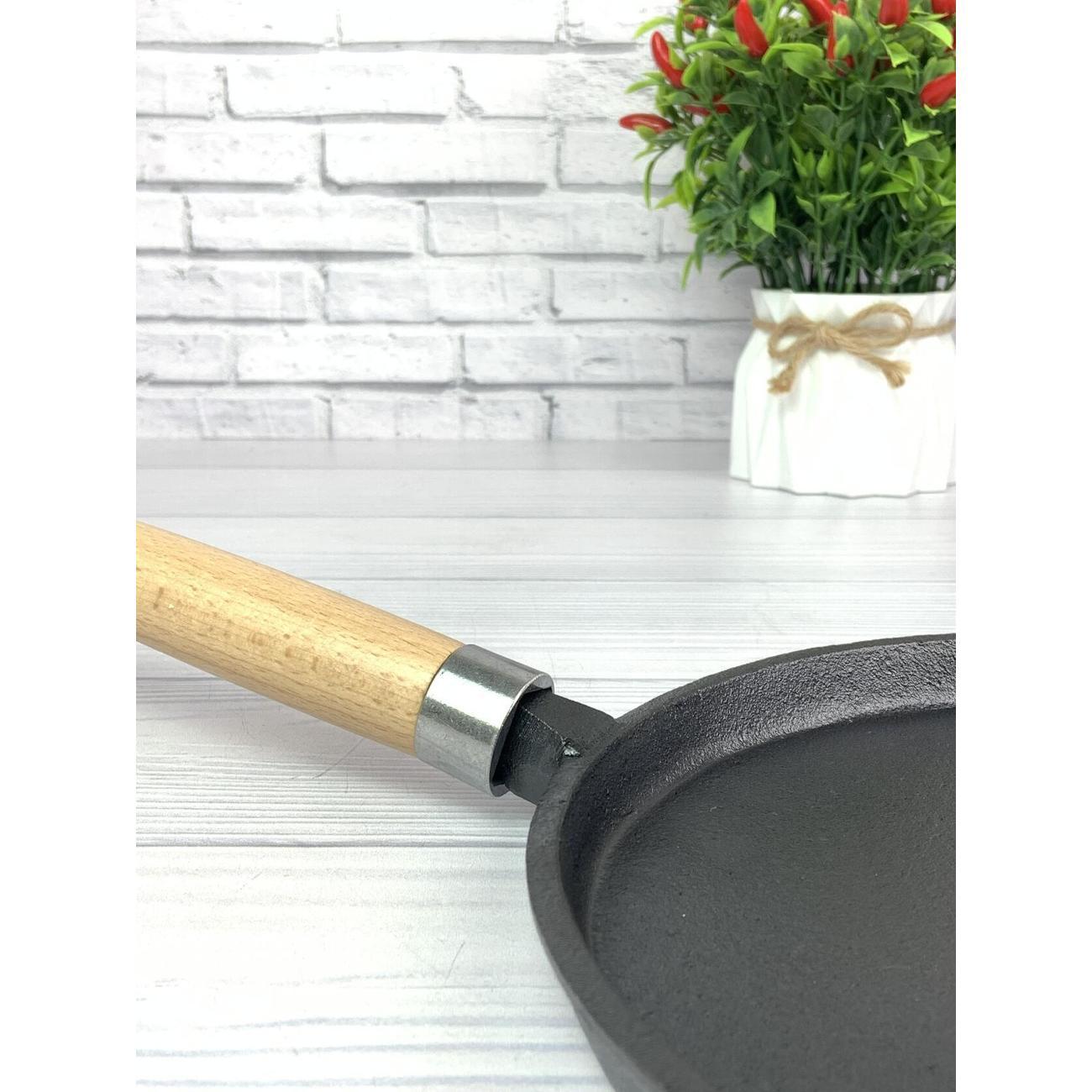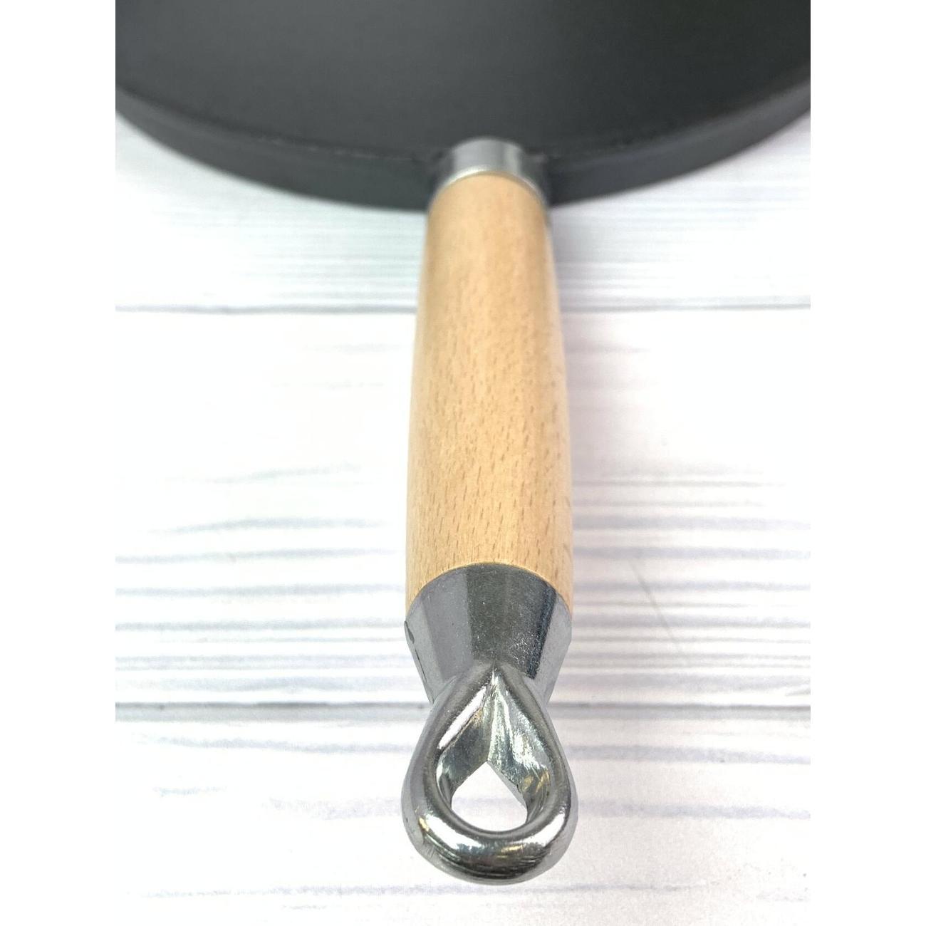 Сковорода блинная чугунная для приготовления блинов и оладий 24 см для всех видов плит, включая индукционную со съемной деревянной ручкой.