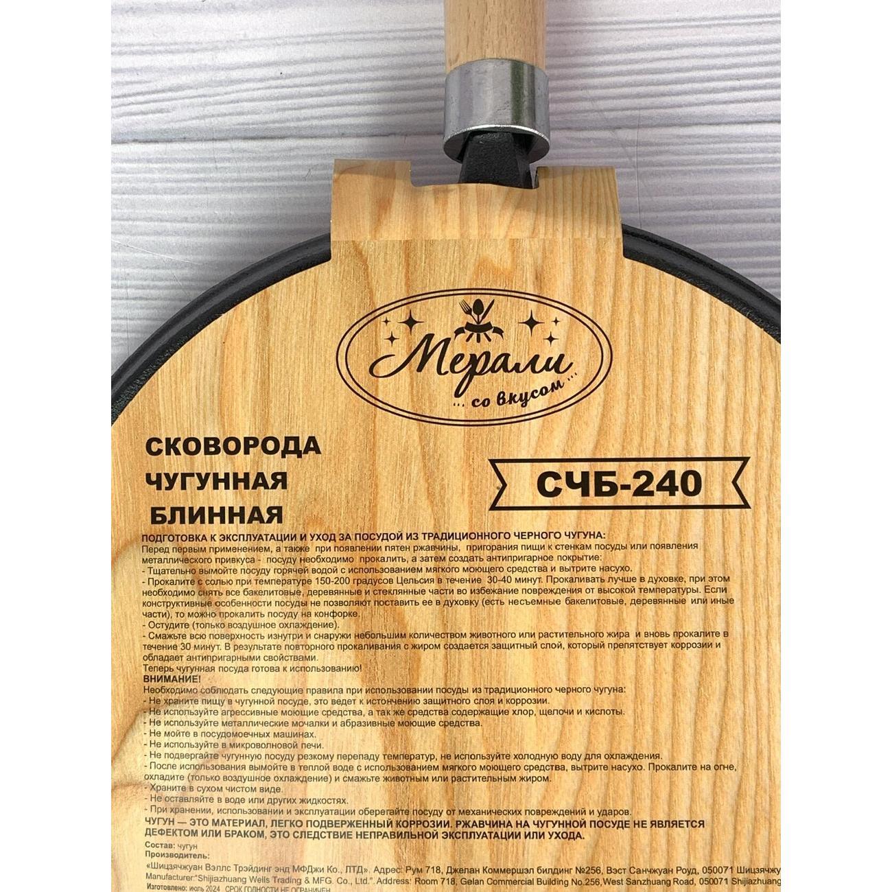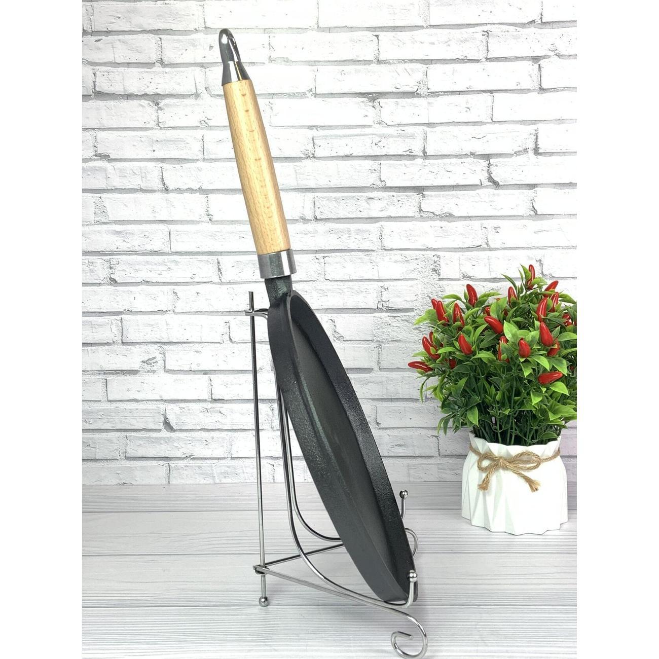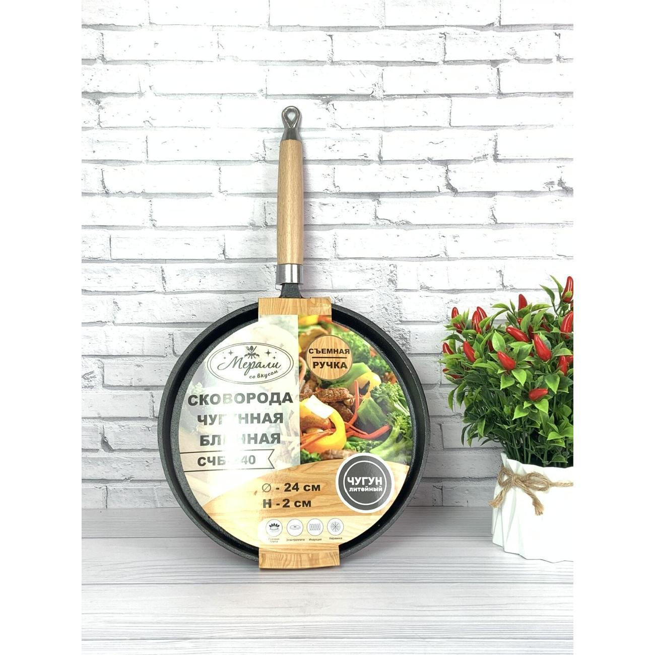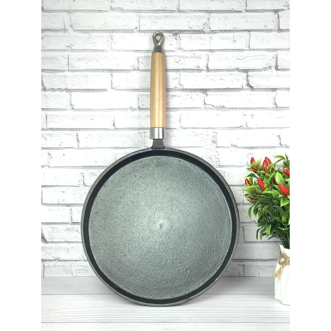 Сковорода блинная чугунная для приготовления блинов и оладий 24 см для всех видов плит, включая индукционную со съемной деревянной ручкой.