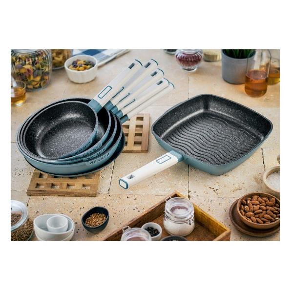 Блинная сковорода Walmer Rochester W34201728 диаметром 28 см предназначена для приготовления пищи на всех типах конфорок, в том числе индукционных. Корпус высокой прочности изготовлен из алюминия. Толстое дно (4,5 см) позволяет поверхности равномерно нагреваться. Высота стенок равна 7 см, благодаря чему посуда вместительная, в ней удобно перемешивать пищу в процессе приготовления.