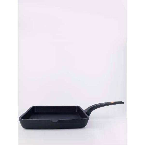 Ручка произведена из термостойкого материала, имеет эргономичную форму, что позволяет легко штабелировать сковородки при хранении