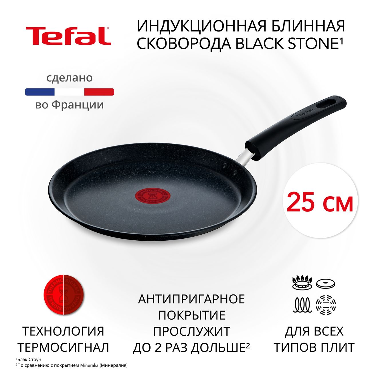 Вы можете купить Сковорода для блинов Tefal 25 см Black Stone (G2813872) в магазинах М.Видео по доступной цене. Сковорода для блинов Tefal 25 см Black Stone (G2813872): подробное описание, фото и отзывы реальных покупателей, характеристики, возможность скачать инструкции и подобрать аксессуары.