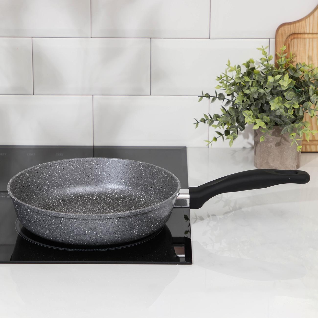 Сковорода «Доляна» «Марбл» 7532515 подходит для мытья в посудомоечной машине. Для удаления загрязнений вручную рекомендуется использовать мягкие губки, чтобы не повредить поверхность. В рабочей области нанесено антипригарное покрытие, поэтому блюда можно готовить без добавления масла.