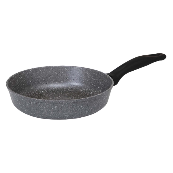 Корпус посуды выполнен из алюминия, который не деформируется при частом воздействии высоких температур. Пластиковая ручка не нагревается в процессе готовки. Есть петля для подвешивания. Диаметр сковороды составляет 24 см. Вес — 0,835 кг. Предназначена для нагрева на газовых, электрических, стеклокерамических плитах.