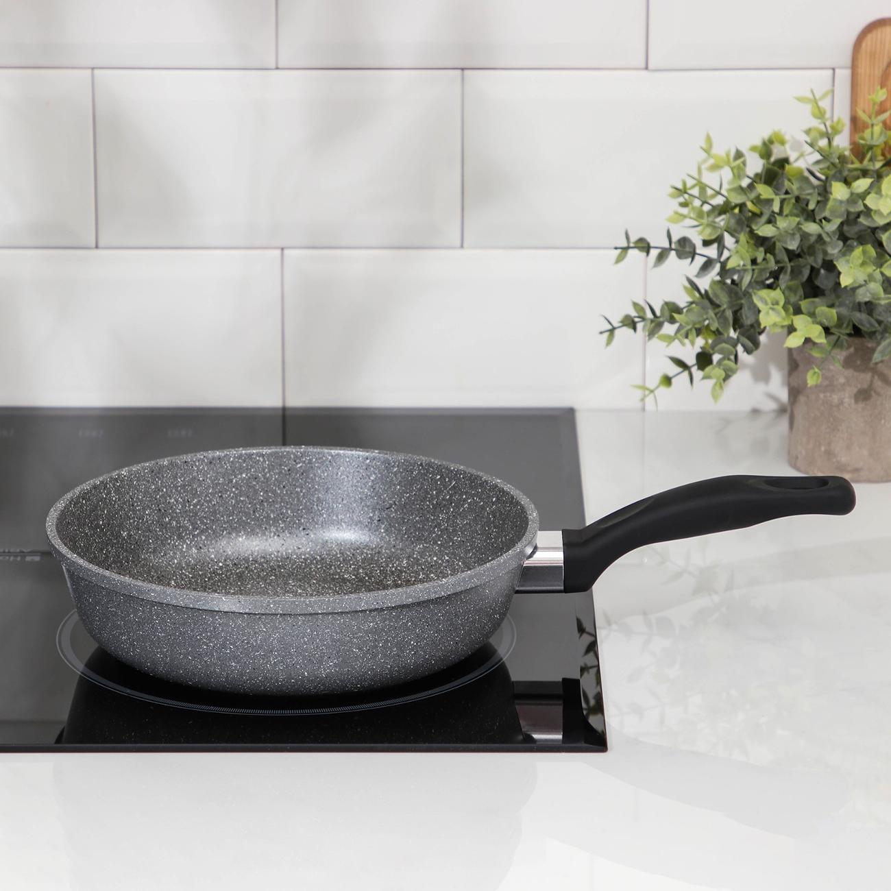 Сковорода «Доляна» «Марбл» 7532516 подходит для мытья в посудомоечной машине. Для удаления загрязнений вручную рекомендуется использовать мягкие губки, чтобы не повредить поверхность. В рабочей области нанесено антипригарное покрытие, поэтому блюда можно готовить без добавления масла.