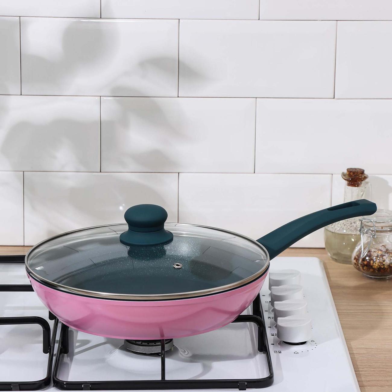 Сковорода «Доляна» «Тропики» 5187927 подходит для мытья в посудомоечной машине. Для удаления загрязнений вручную рекомендуется использовать мягкие губки, чтобы не повредить поверхность. В рабочей области нанесено антипригарное покрытие, поэтому блюда можно готовить без добавления масла.