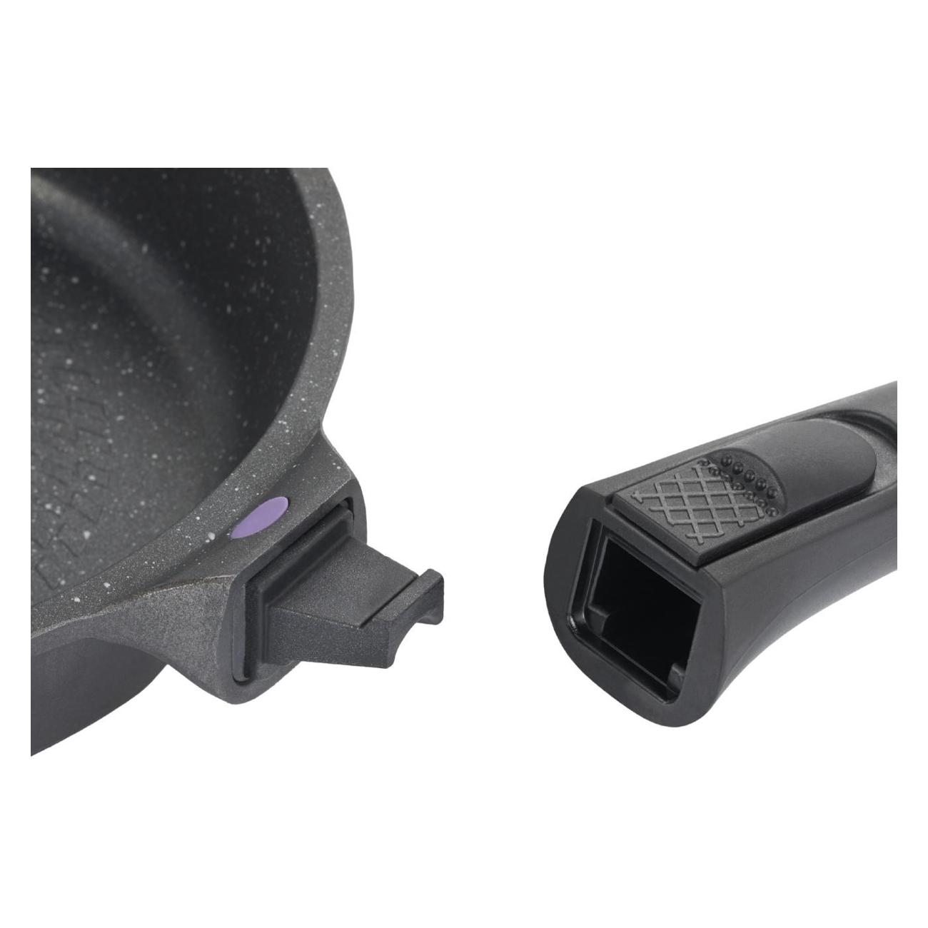 Сковорода Gipfel Proofet 2484 оборудована съемной ручкой из бакелита, которая не нагревается во время приготовления блюд. В комплекте со сковородой поставляется стеклянная крышка. Модель с антипригарным покрытием, которое препятствует пригоранию пищи в процессе использования. Изготовлена из литого алюминия черного цвета. Устойчива к механическим повреждениям и деформации. Не теряет внешний вид и потребительские свойства долгое время. Совместима с большинством видов варочных поверхностей. На ручке есть петля для подвешивания. Диаметр дна составляет 22 см. Вес — 1,085 кг.