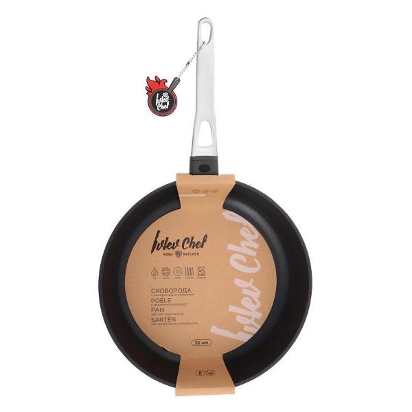 Сковорода Ivlev Chef Home BY K 846-605 диаметром 28 см серии Royal. Изготовлена из литого алюминия черного цвета. Термоизолированная серебристая ручка выполнена из нержавеющей стали. Предусмотрена петля для подвешивания. Антидеформационное дно защищает изделие от повреждений, равномерно распределяет и сохраняет тепло. Антипригарное покрытие исключает пригорание продуктов и позволяет готовить с добавлением минимального количества масла. Сковороду можно использовать на газовых, индукционных, чугунных, стеклокерамических, галогеновых конфорках. Изделие можно мыть в посудомоечной машине. Вес составляет 1,091 кг.