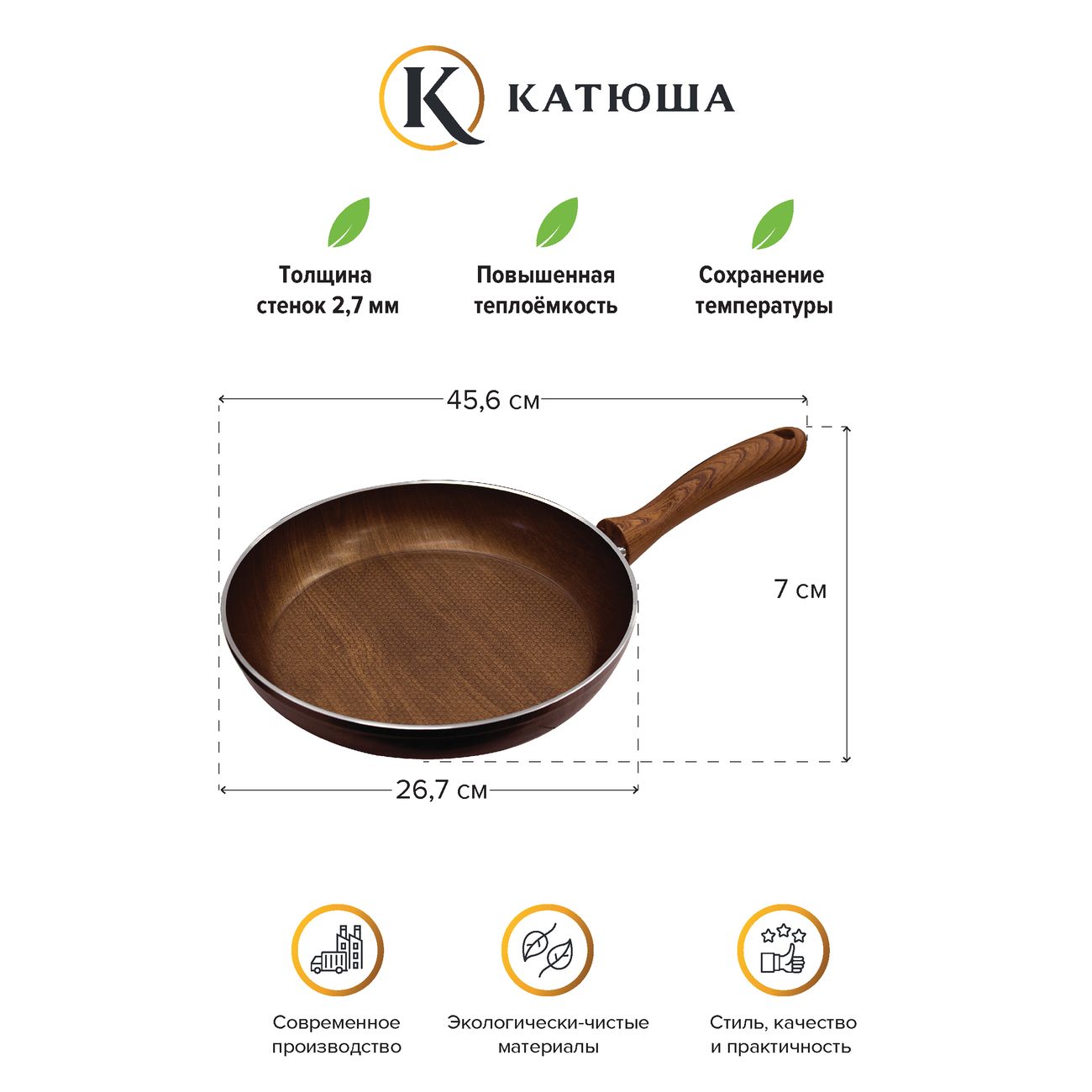 Сковорода «Катюша» 49010-260-СД диаметром 26 см обеспечивает удобство готовки благодаря качественному антипригарному покрытию. Защитный слой выполнен без применения PFOA, что гарантирует безопасность эксплуатации. Вредные вещества не выделяются при воздействии высоких температур.