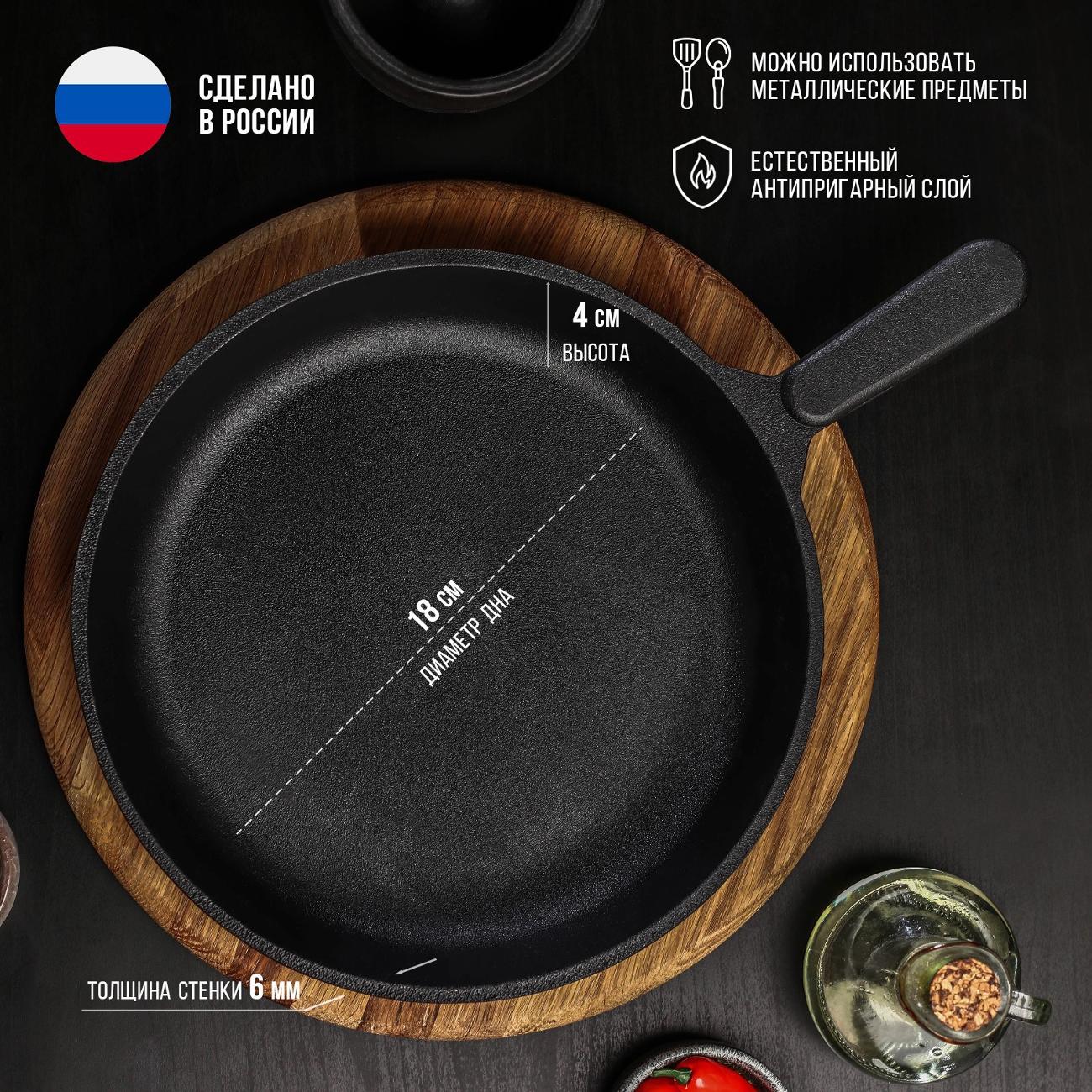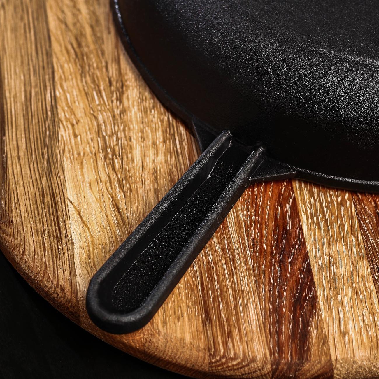 Сковорода Magma 9129524 диаметром 24 см предназначена для всех типов конфорок. За счет того, что корпус и ручка изготовлены из чугуна, изделие подходит для использования в духовке. Прочный материал с хорошей теплопроводностью обеспечивает при приготовлении пищи эффект томления. Перед началом эксплуатации поверхность модели необходимо прокалить с небольшим количеством растительного масла для образования антипригарного слоя. Для очистки не рекомендуется применять едкие моющие средства и абразивные щетки. Чтобы посуда не покрывалась ржавчиной, ее вытирают насухо.