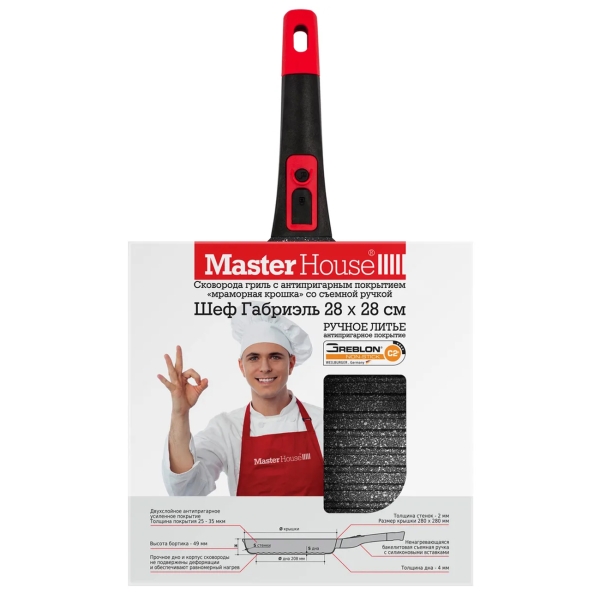 Вы можете купить Сковорода Master House Шеф Габриэль 28x28см в магазинах М.Видео по доступной цене. Сковорода Master House Шеф Габриэль 28x28см: подробное описание, фото и отзывы реальных покупателей, характеристики, возможность скачать инструкции и подобрать аксессуары.