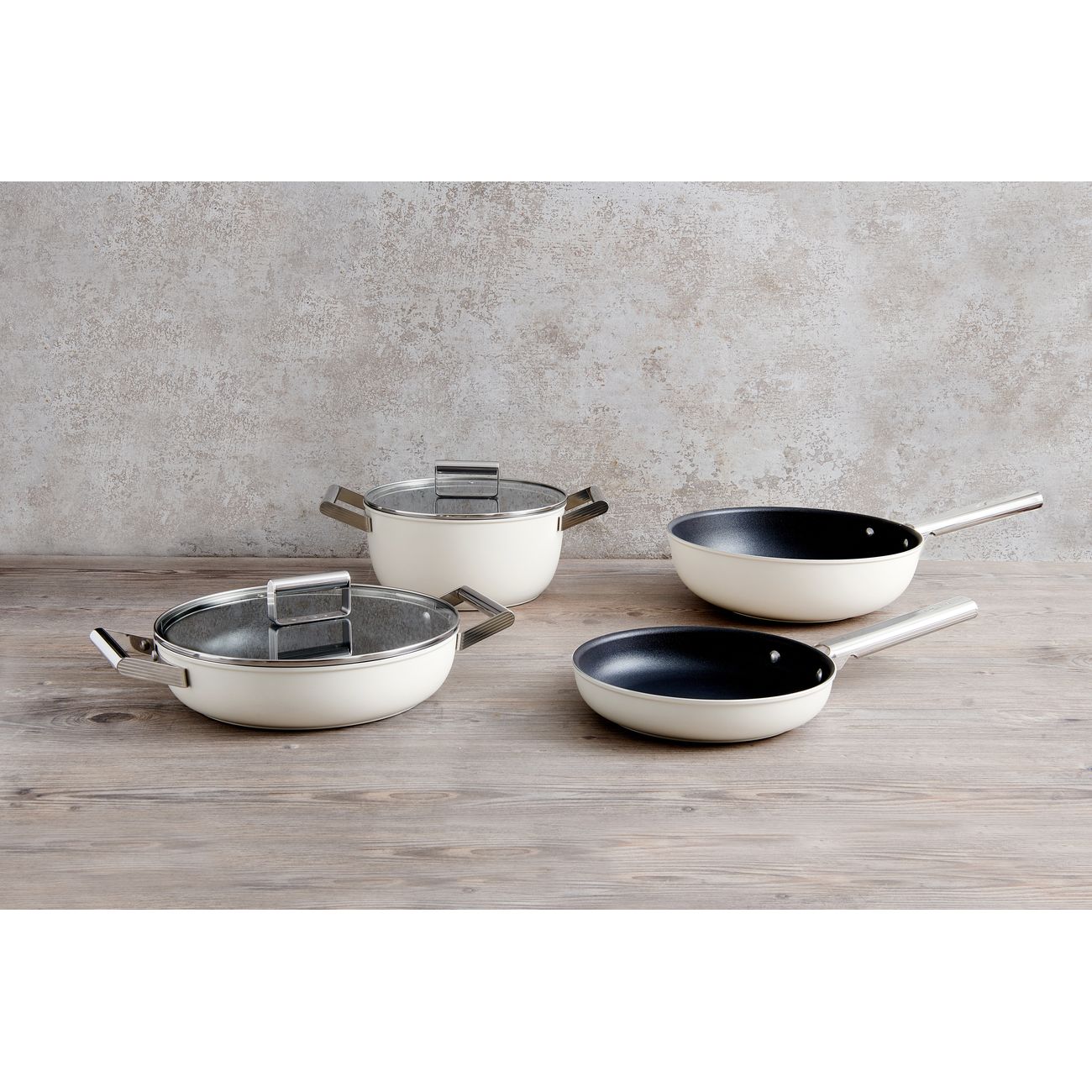 Сковорода Smeg изготовлена из кованного алюминия. Диаметр модели составляет 30 см, диаметр рабочей поверхности — 23 см. Дно многослойное, покрытие хорошо распределяет тепло. Сковорода подходит для всех типов кухонных плит. Модель можно применять для приготовления пищи в духовом шкафу. Возможна мойка в посудомоечной машине.