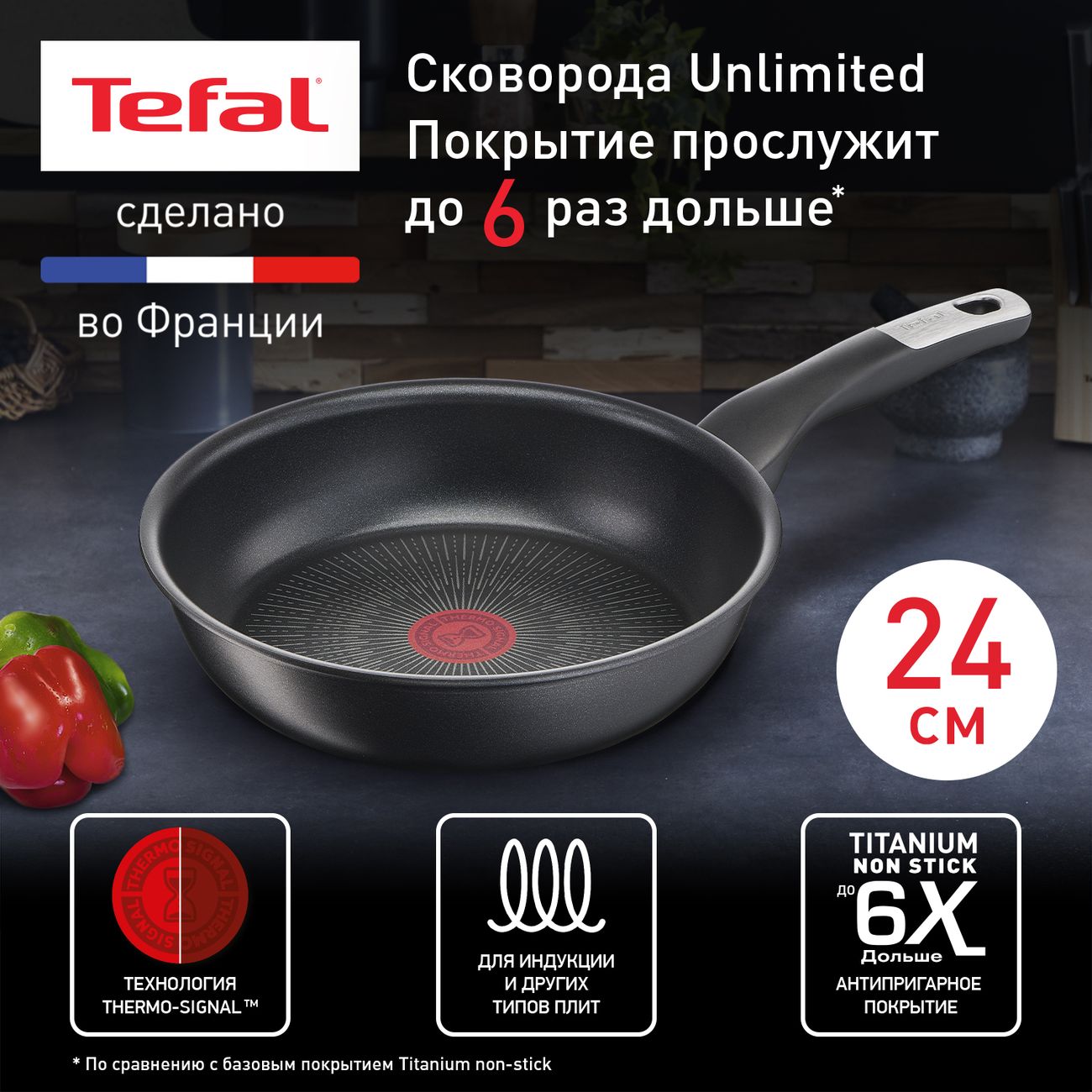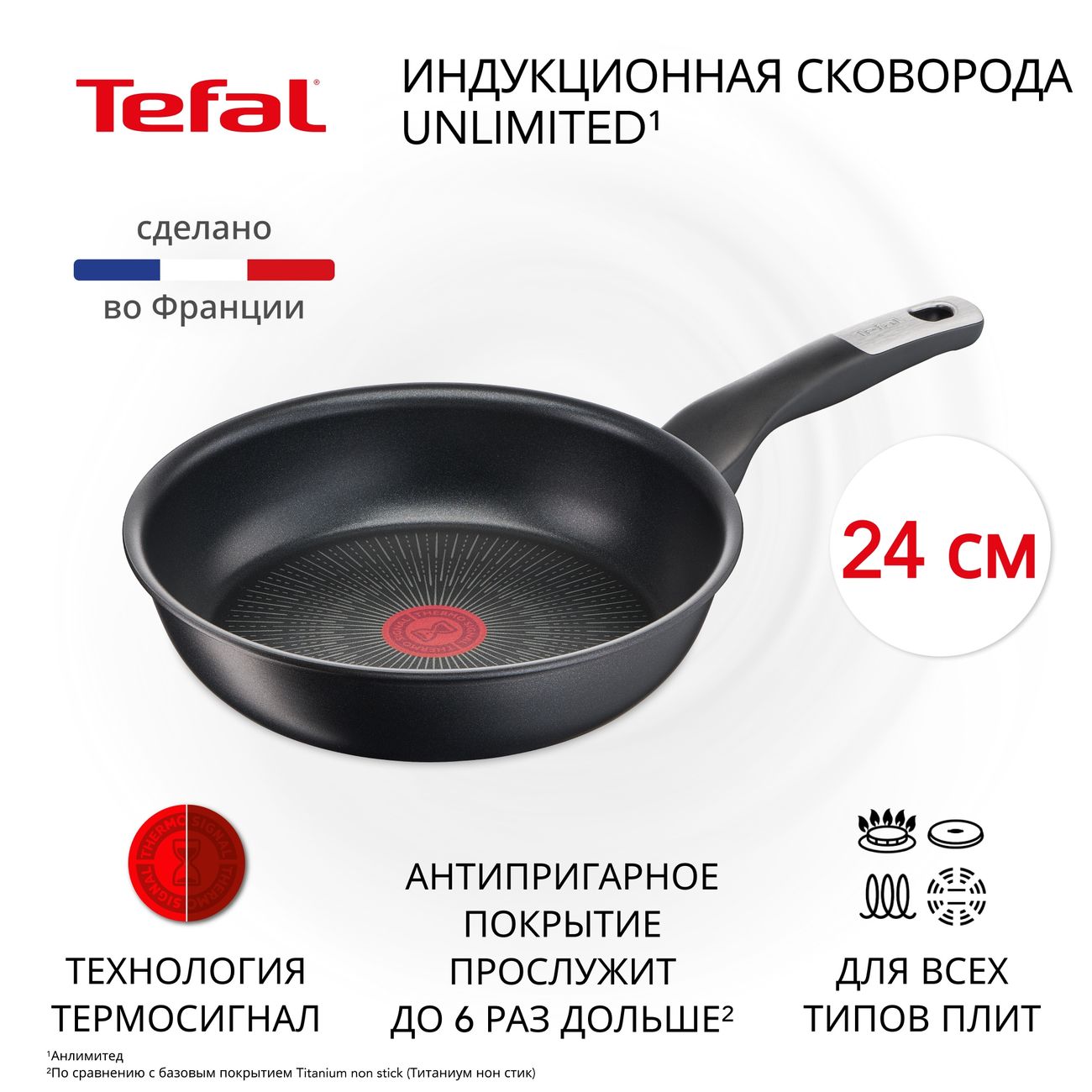 Вы можете купить Сковорода Tefal Unlimited 24 см G2550472 в магазинах М.Видео по доступной цене. Сковорода Tefal Unlimited 24 см G2550472: подробное описание, фото и отзывы реальных покупателей, характеристики, возможность скачать инструкции и подобрать аксессуары.